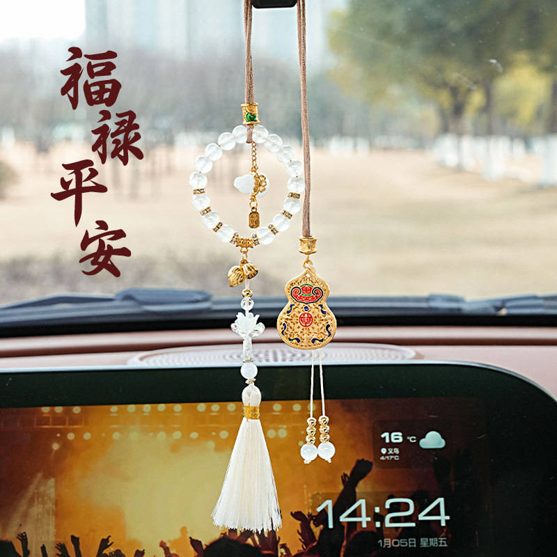 古风汽车挂件 精致圆珠葫芦车载后视镜挂饰 福禄平安流苏车用挂件