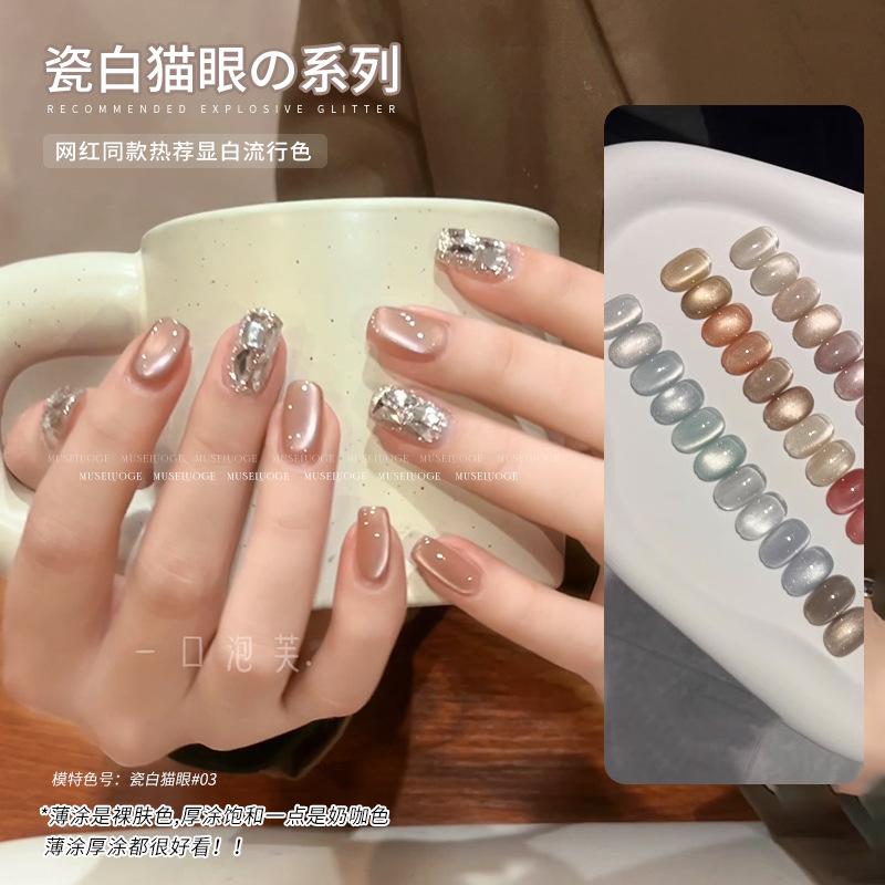 罗格瓷白猫眼指甲油胶新款超亮细闪猫眼