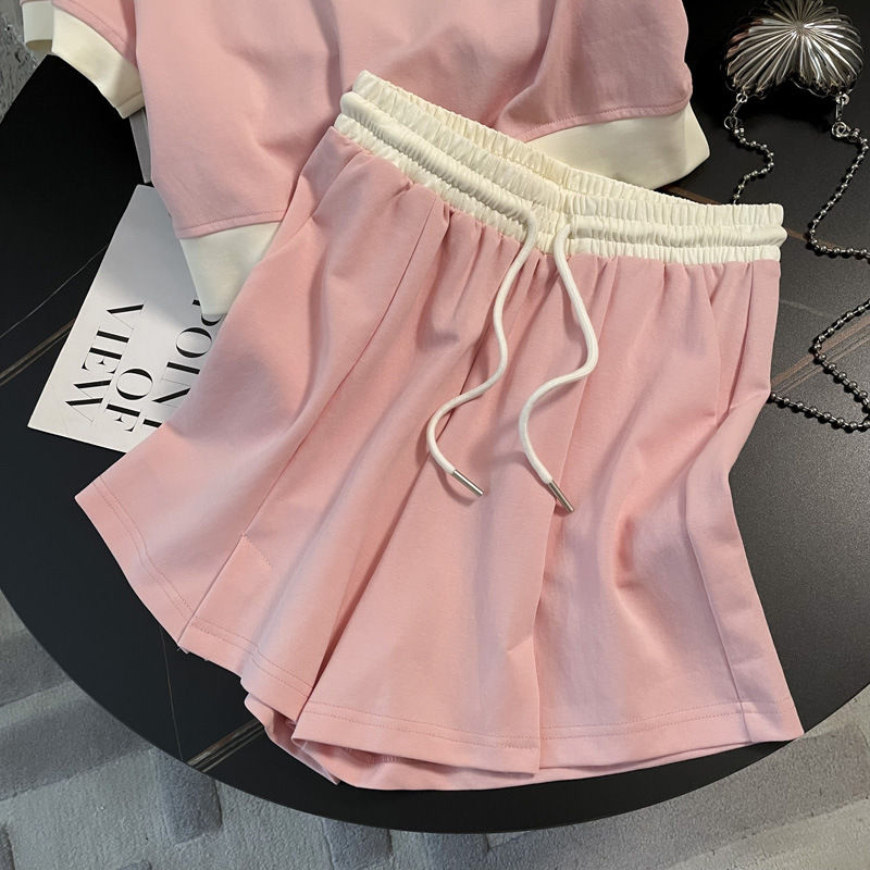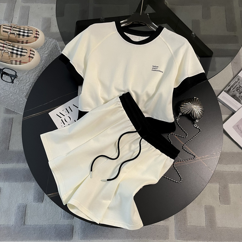 小香风休闲运动套装女夏装新款小个子显高圆领短袖短裤两件套