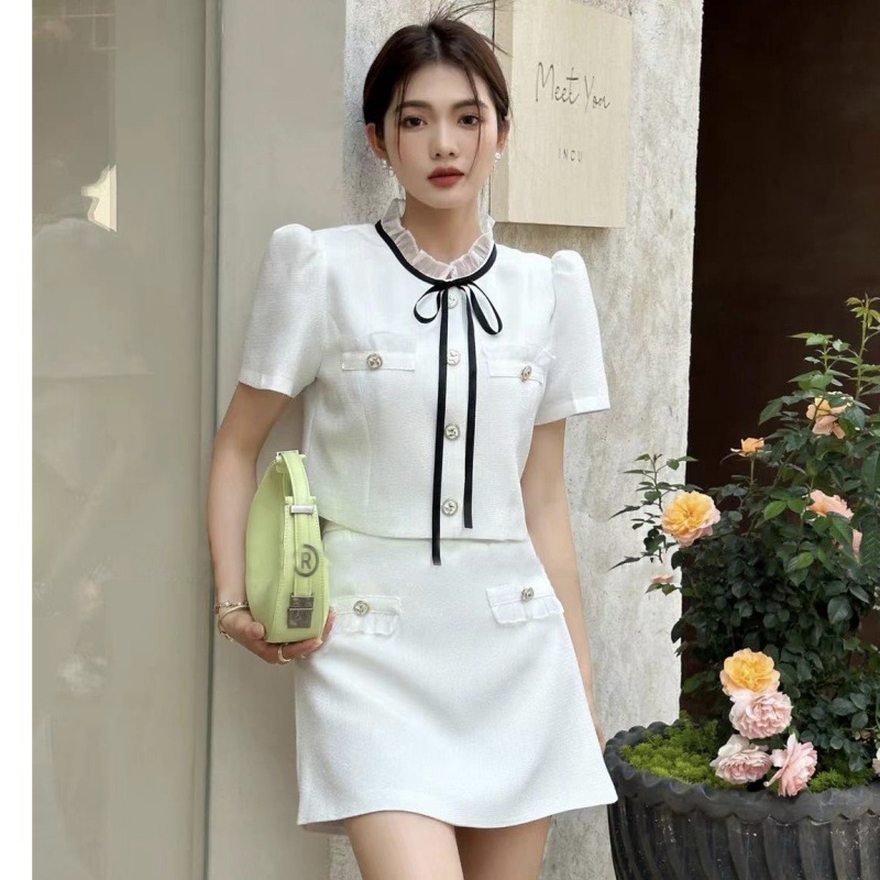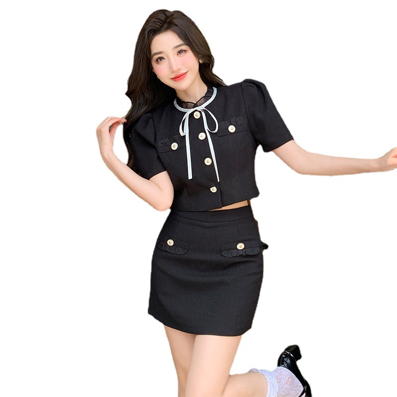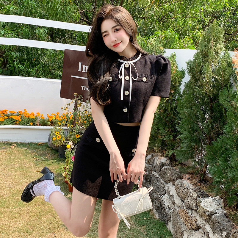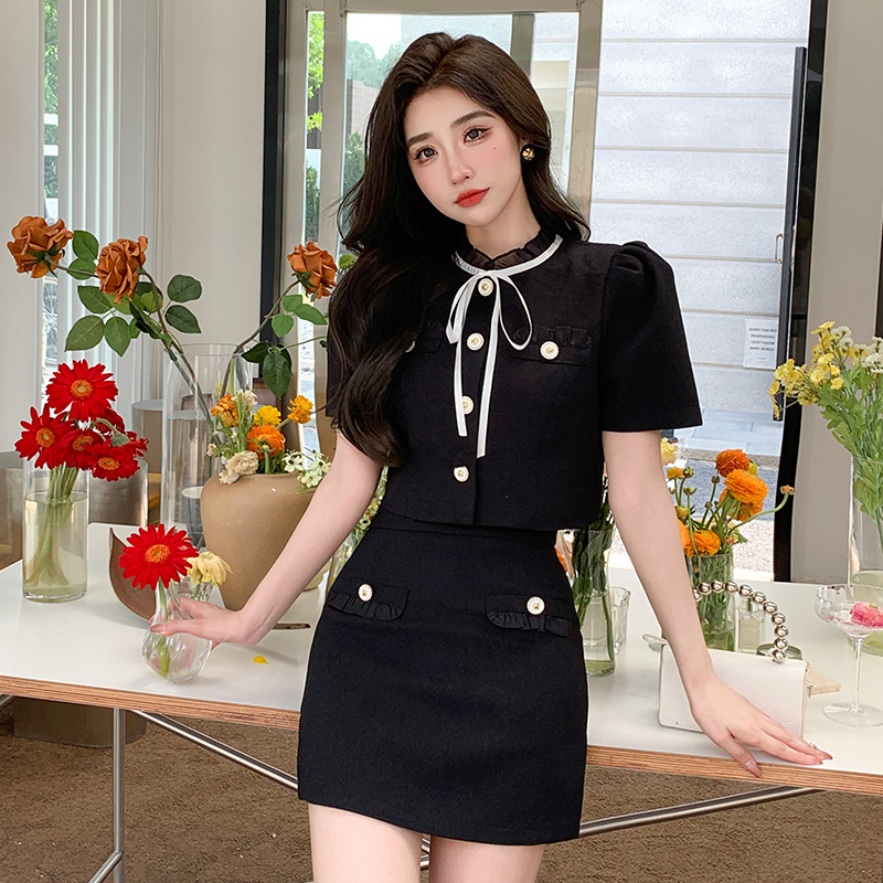 夏新款短袖气质优雅小香风复古两件套减龄小洋装小个子套装