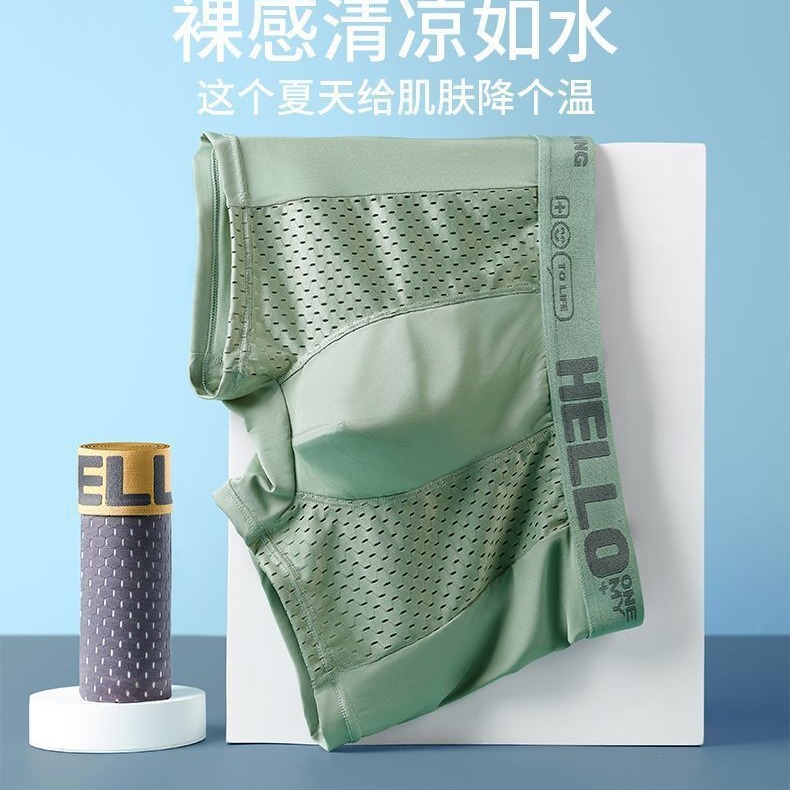 新款冰丝男士内裤平角裤冰凉透感青年透气四角短裤头