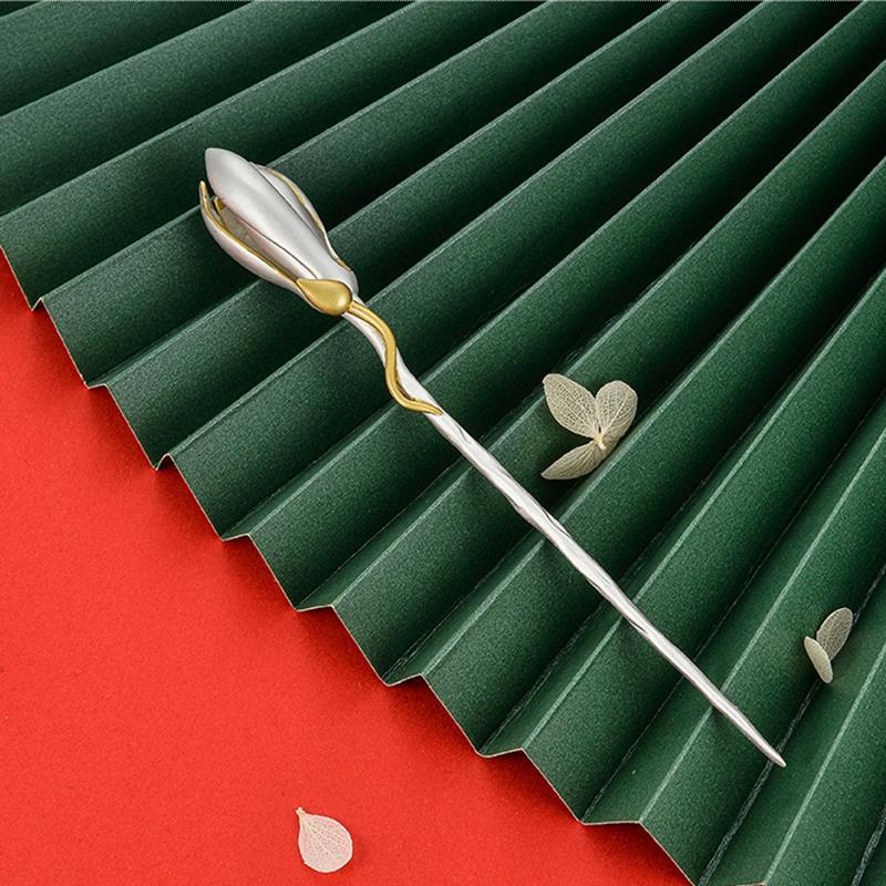 S925银玉兰花朵发簪子复古典雅汉服装戏曲盘发钗头饰女款