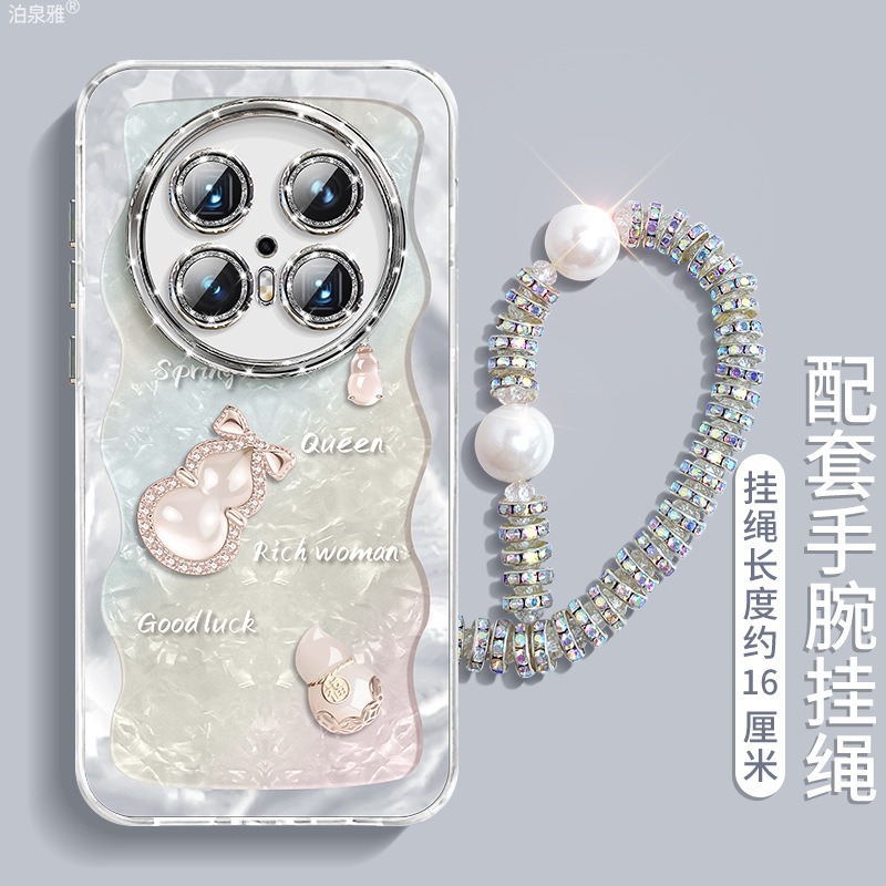 - 【好运葫芦-羽砂白】珍珠挂绳★闪钻升级★防摔不顶膜