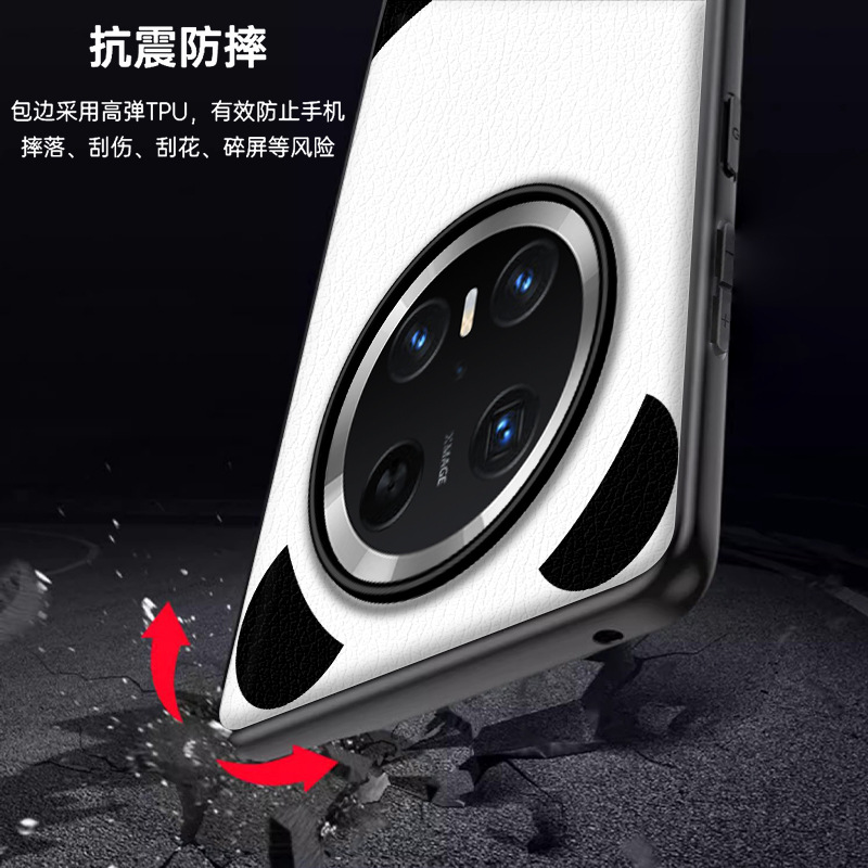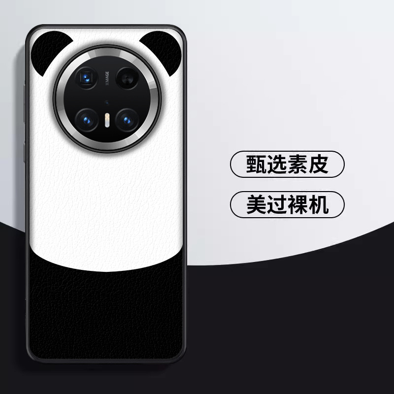 华为mate70手机壳mate70pro防摔保护套皮纹mt60pro时尚熊猫拼