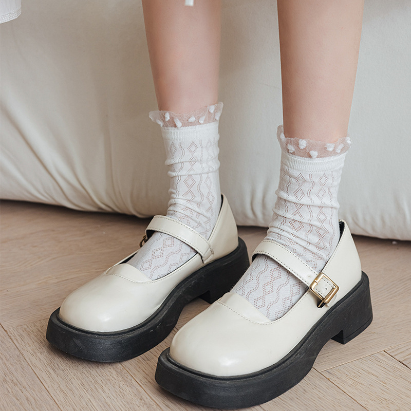 白色蕾丝堆堆袜子女春夏中筒棉袜ins潮日系甜美薄款jk花边长袜