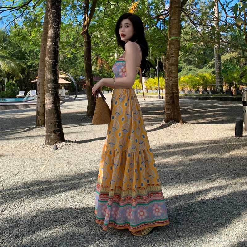 吊带连衣裙女设计感度假风长裙简约气质露背裙子