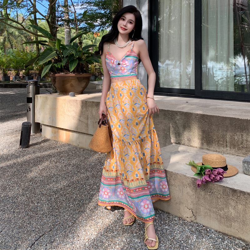 法式套装气质吊带背心上衣女夏季海边度假两件套高级感半身裙长裙