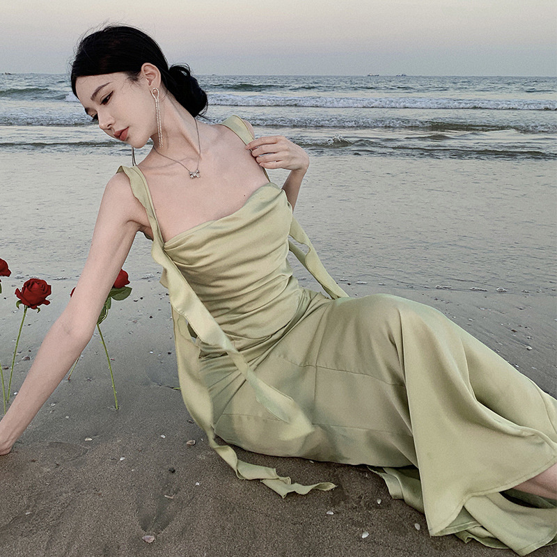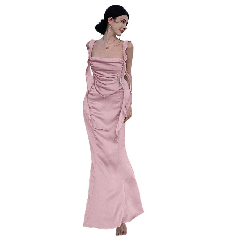 方圆同款粉色露背飘带礼服新娘姐妹团伴娘服晨袍敬酒服吊带连衣裙