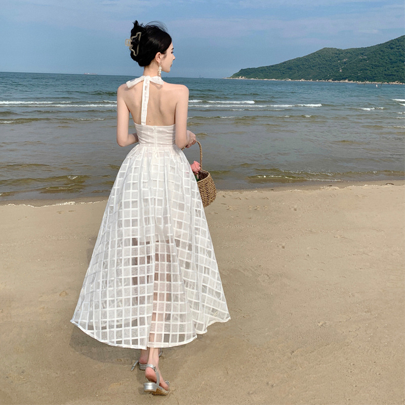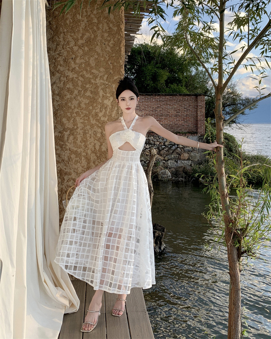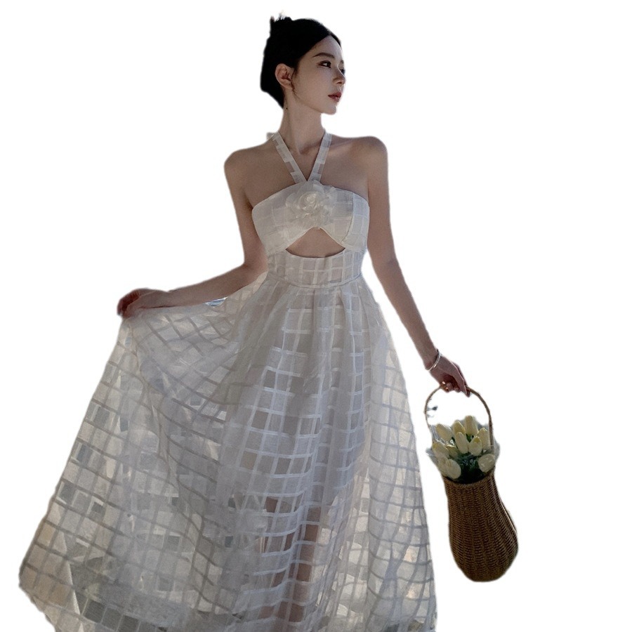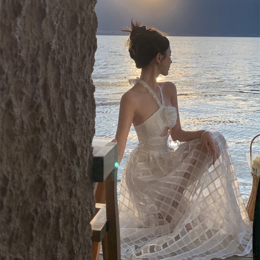 新款高级感吊带裹胸花朵性感时尚气质连衣裙仙女裙沙滩度假裙