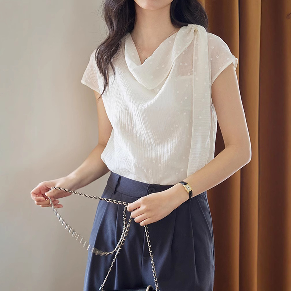 夏天第一件衬衫~白色荡领飘带点点印花天丝衬衫女夏复古气质上衣