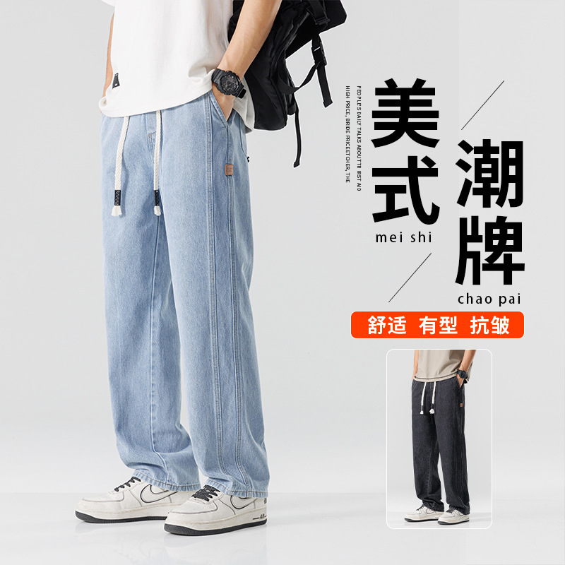 夏季新款牛仔裤宽松直筒美式高街休闲潮流港风春秋长裤子男生
