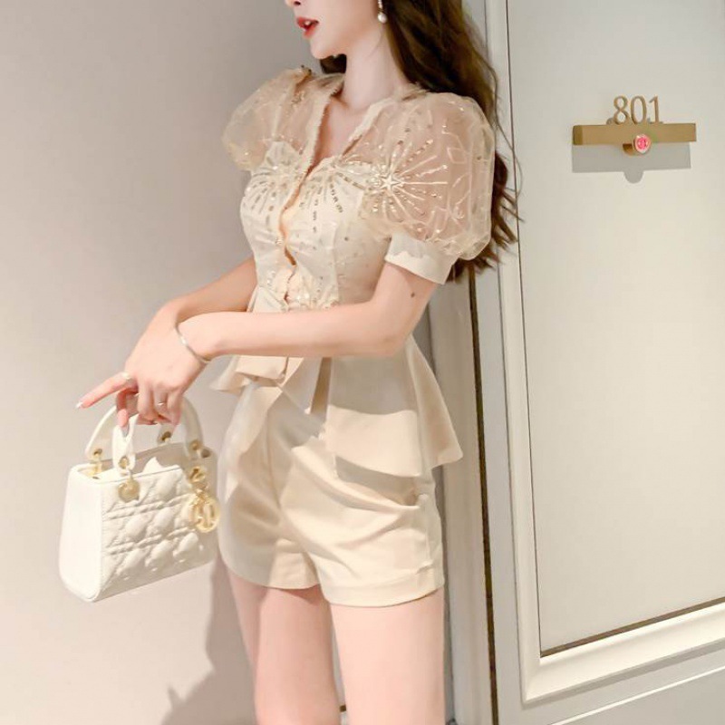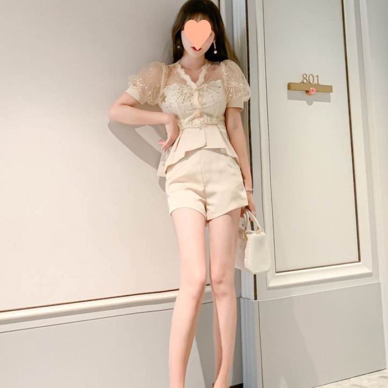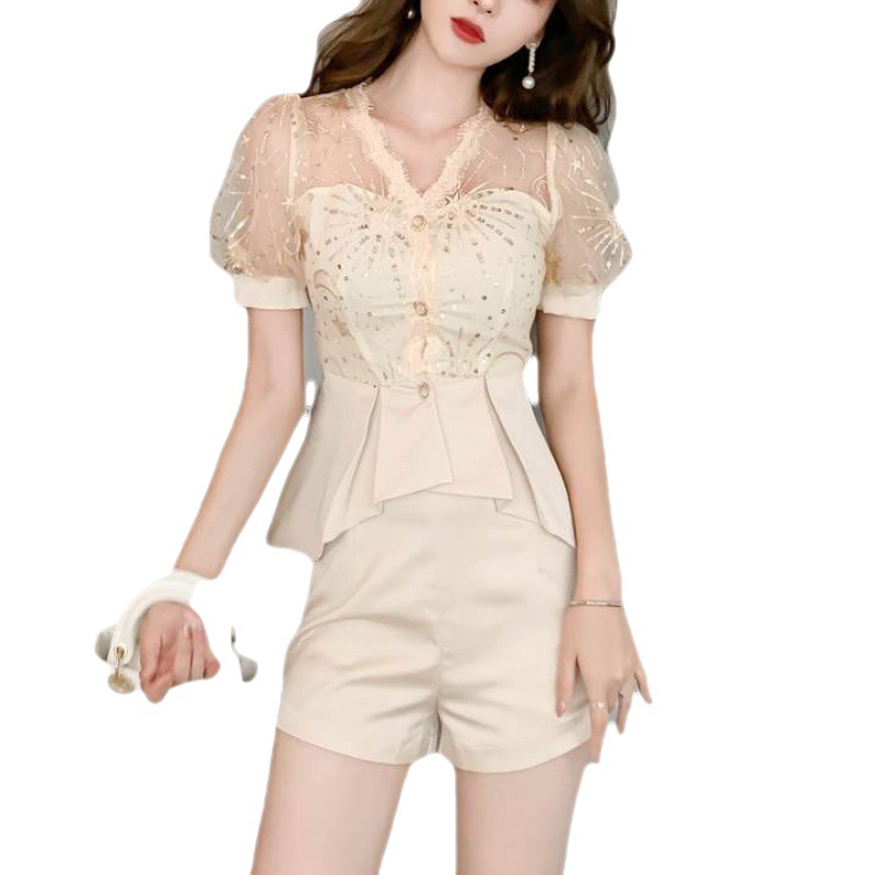 小香风夏季炸街仙女矮个子套装名媛新款法式亮片上衣短裤两件套潮