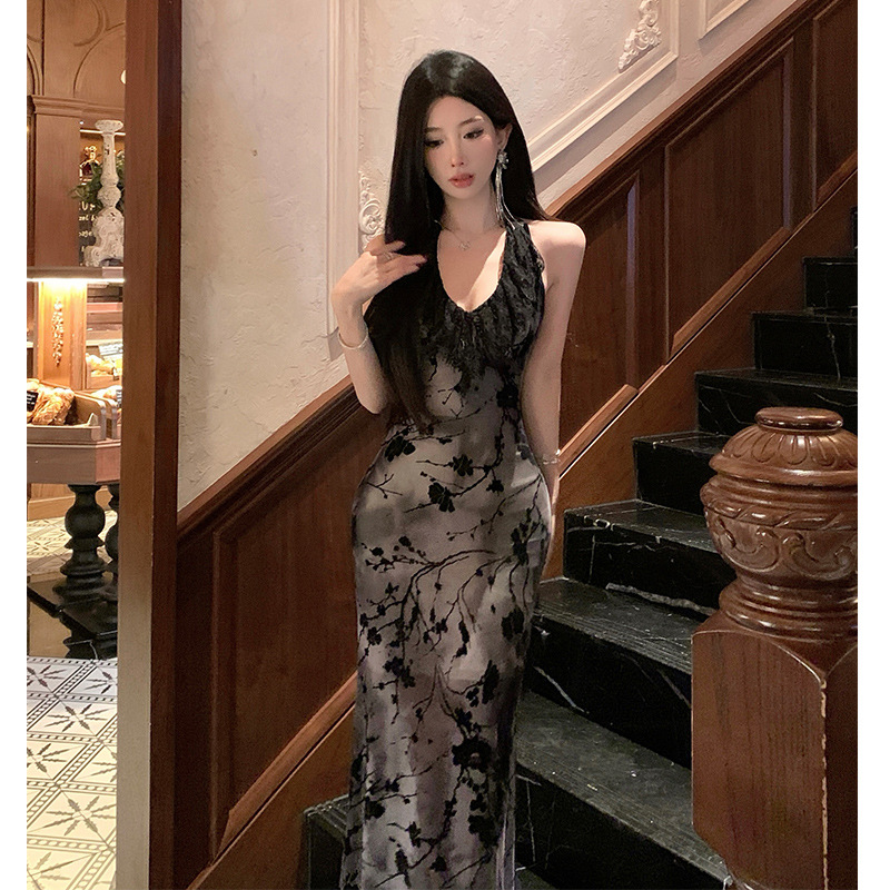 实拍法式纯欲风不规则露腰显瘦吊带连衣裙女三亚海边度假拍照长裙