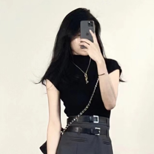 - 黑色半高领短袖上衣【夏装/夏季/小香风/学院风/韩剧/