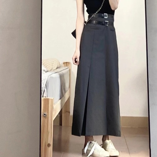 - 灰色百褶半身裙+双皮带 【活泼减龄/小香风套装/茶系穿