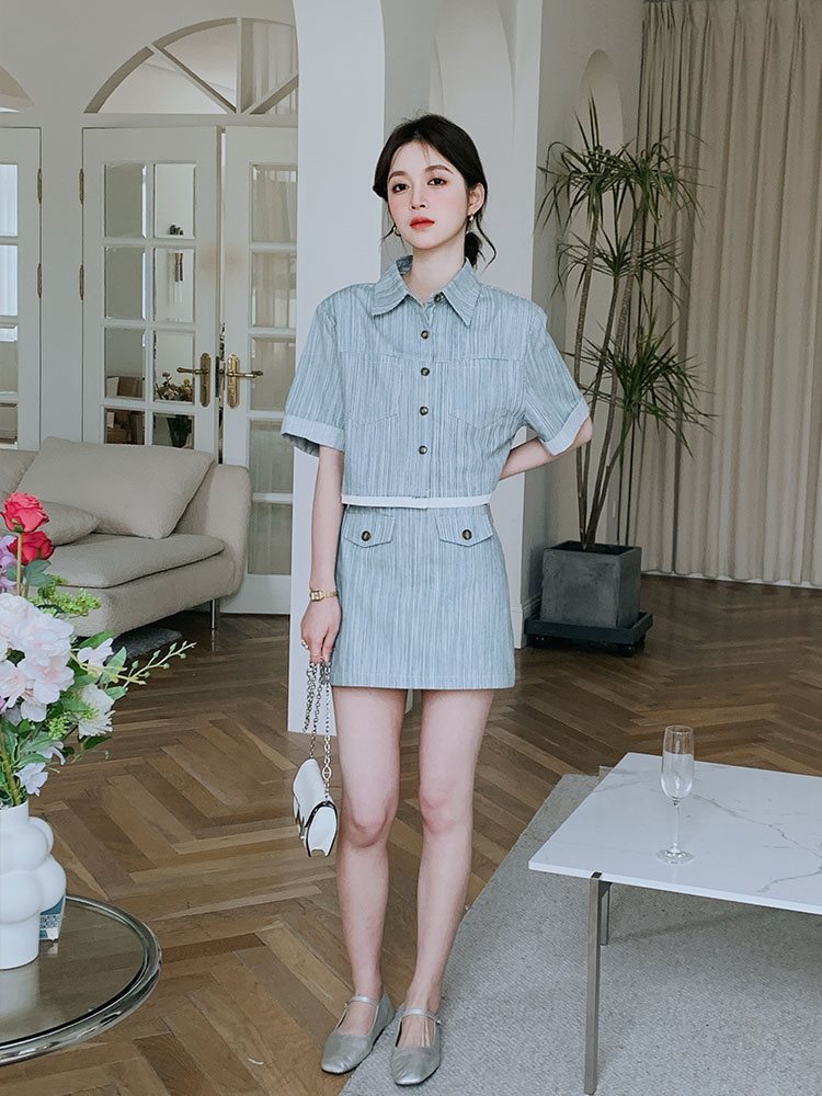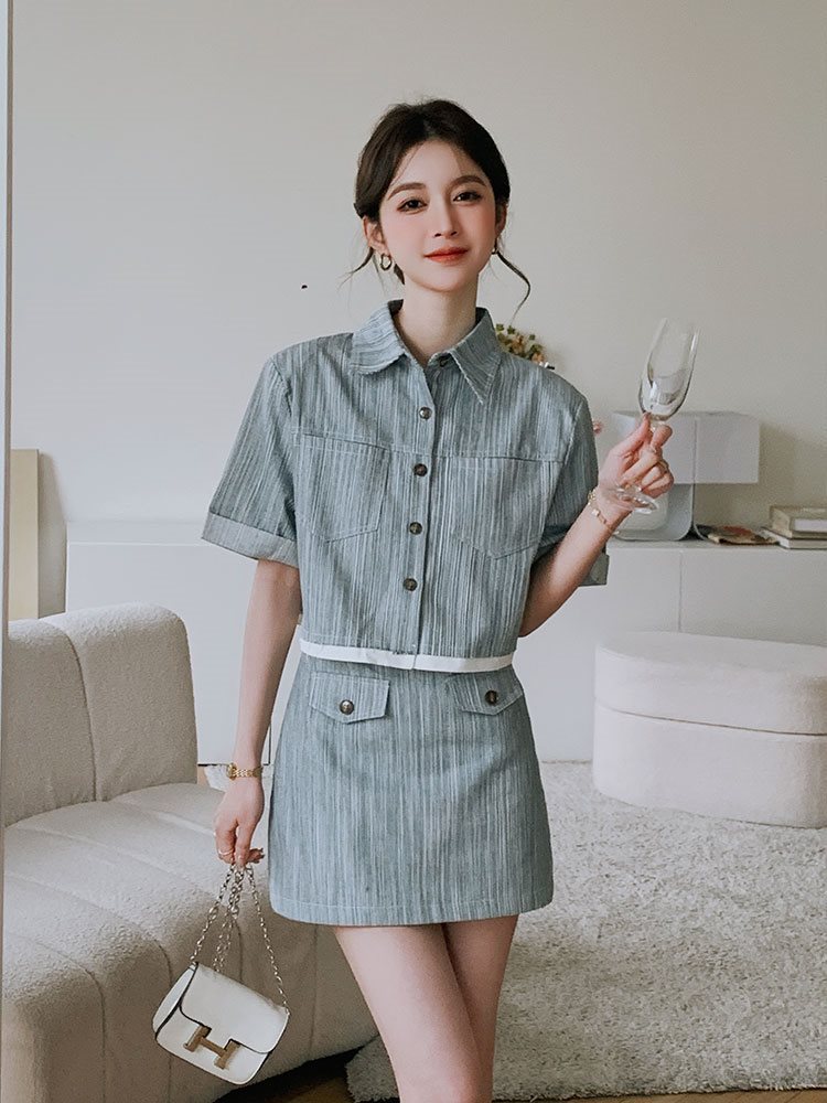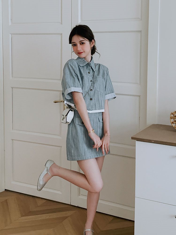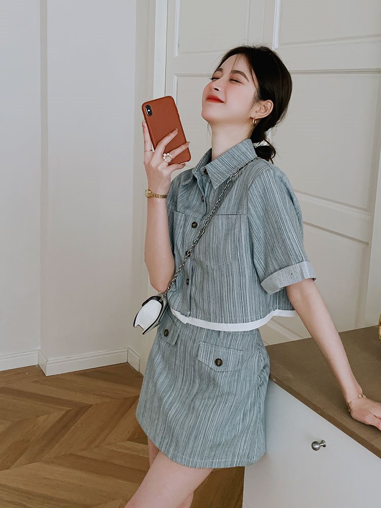 夏季新款法式小香风套装裙小个子网红感短袖外套女两件套