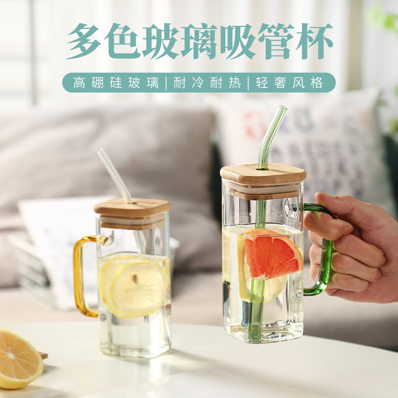 奶茶牛奶水果橙汁可乐吸管杯子高硼硅玻璃水杯透明带盖冷饮饮料杯