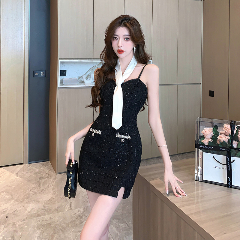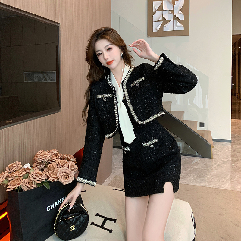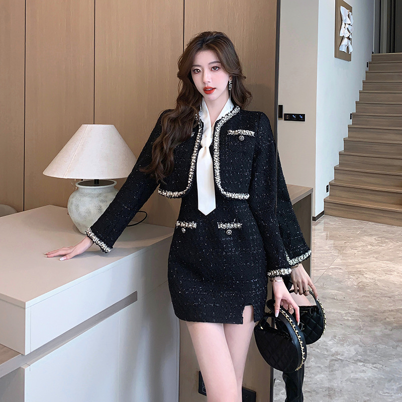 实拍小香风套装裙秋季新款小个子辣妹两件套吊带裙短外套上衣