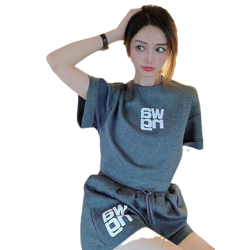 春夏新款韩版休闲运动套装女短款上衣宽松显瘦学生跑步两件套