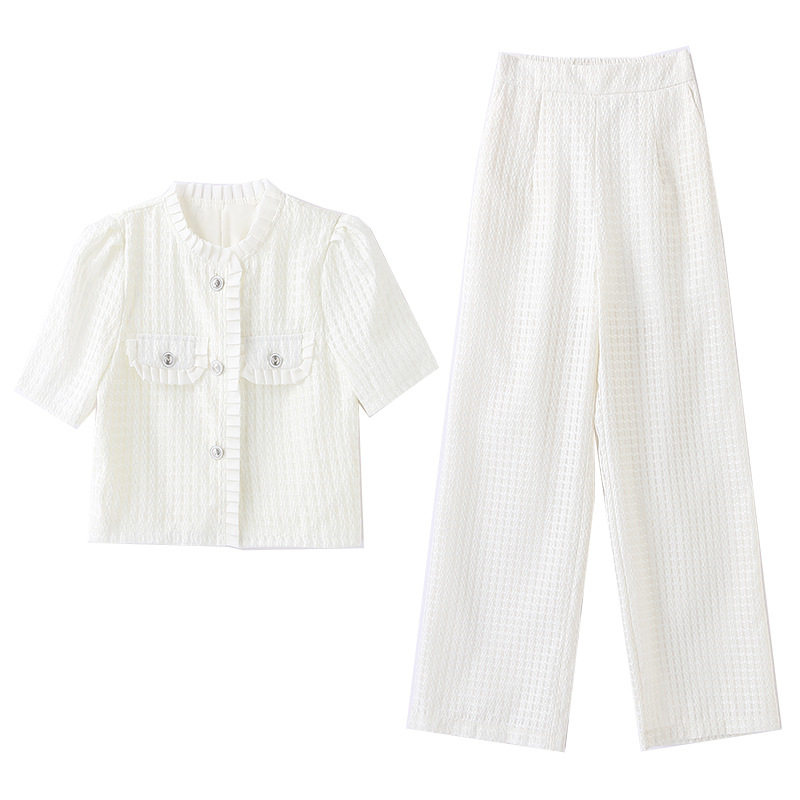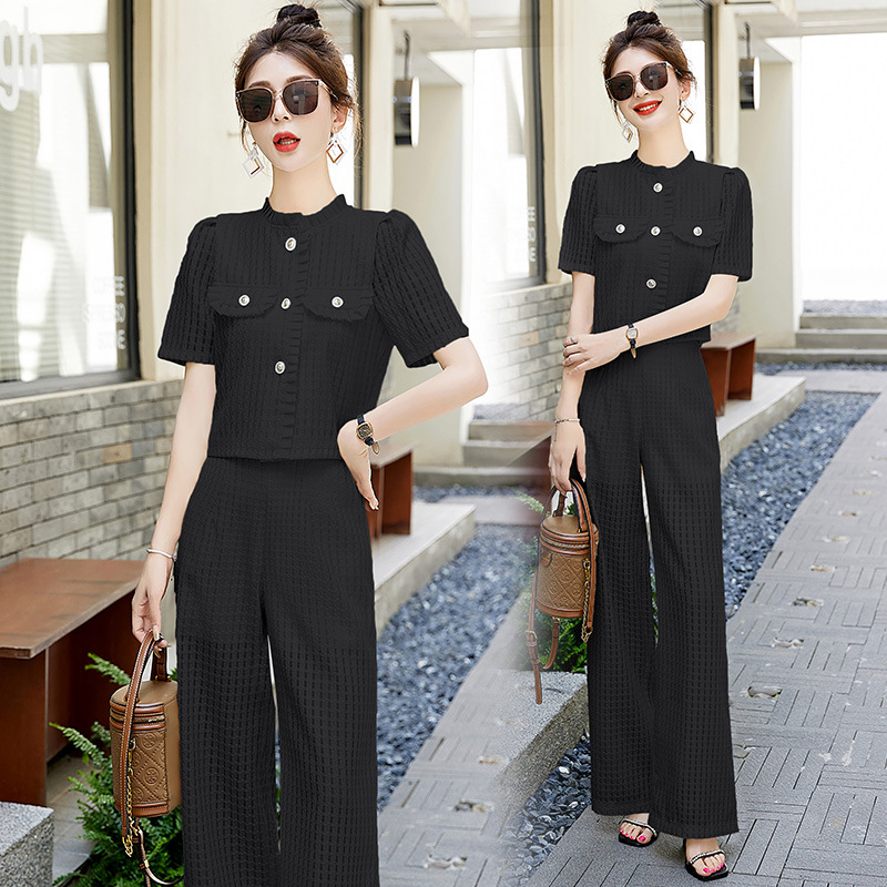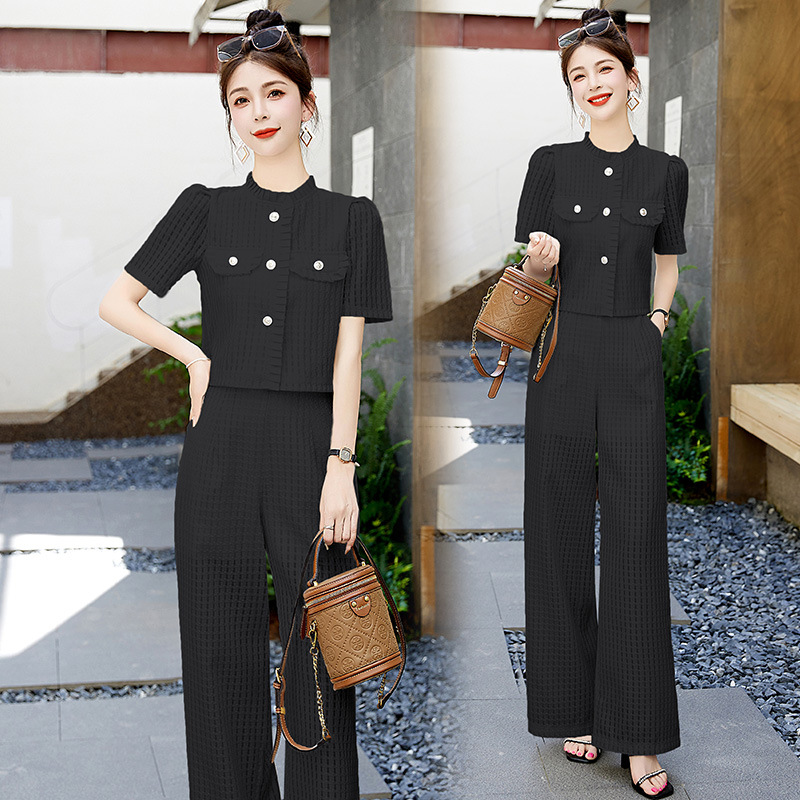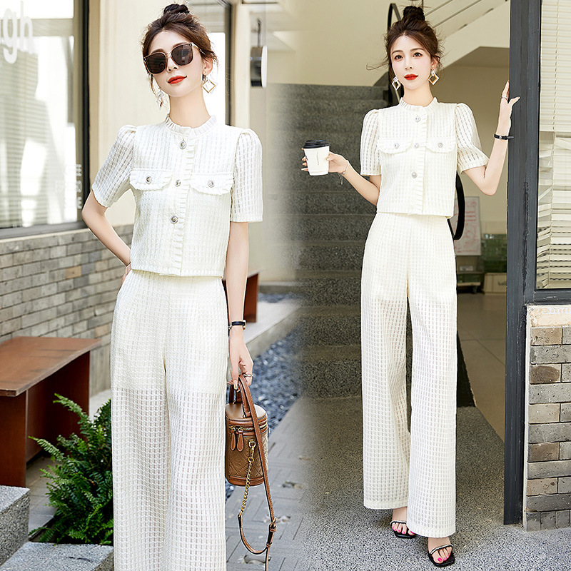 职业套装女夏新款干练气质轻奢高级感小香风御姐阔腿裤两件套