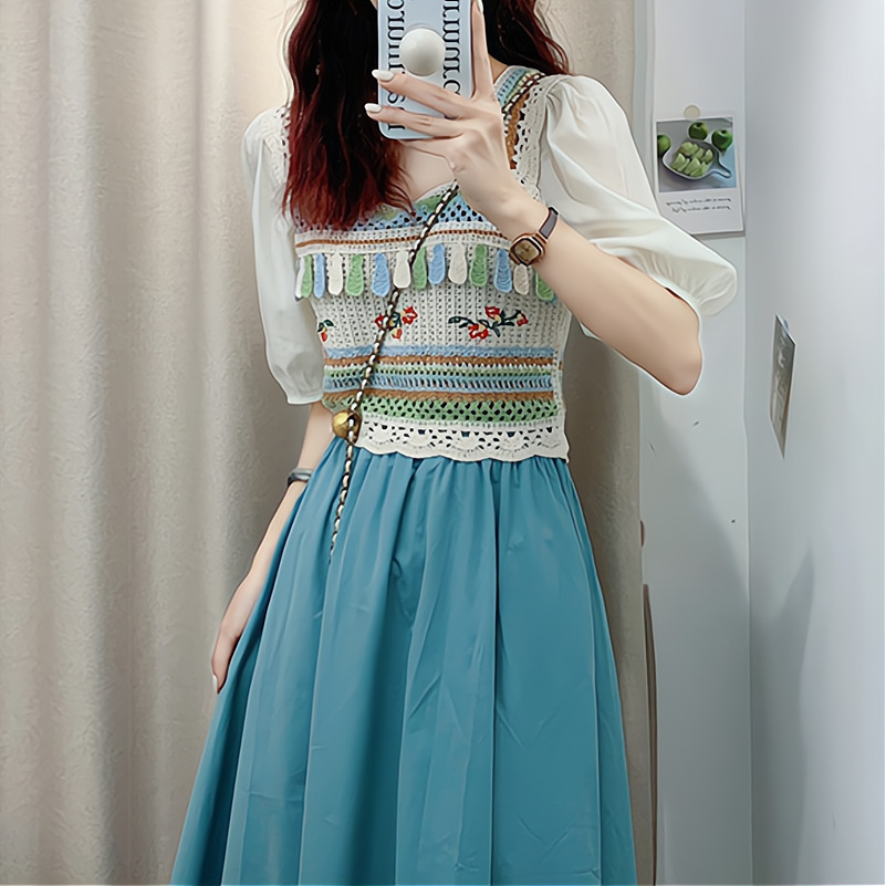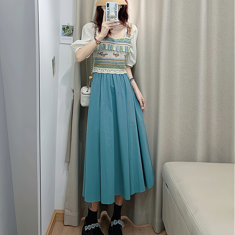 小个子显高洋气时尚减龄套装裙小清新可盐可甜上衣两件套小香风夏