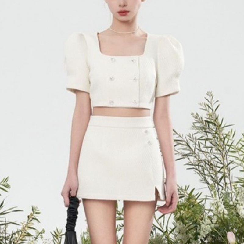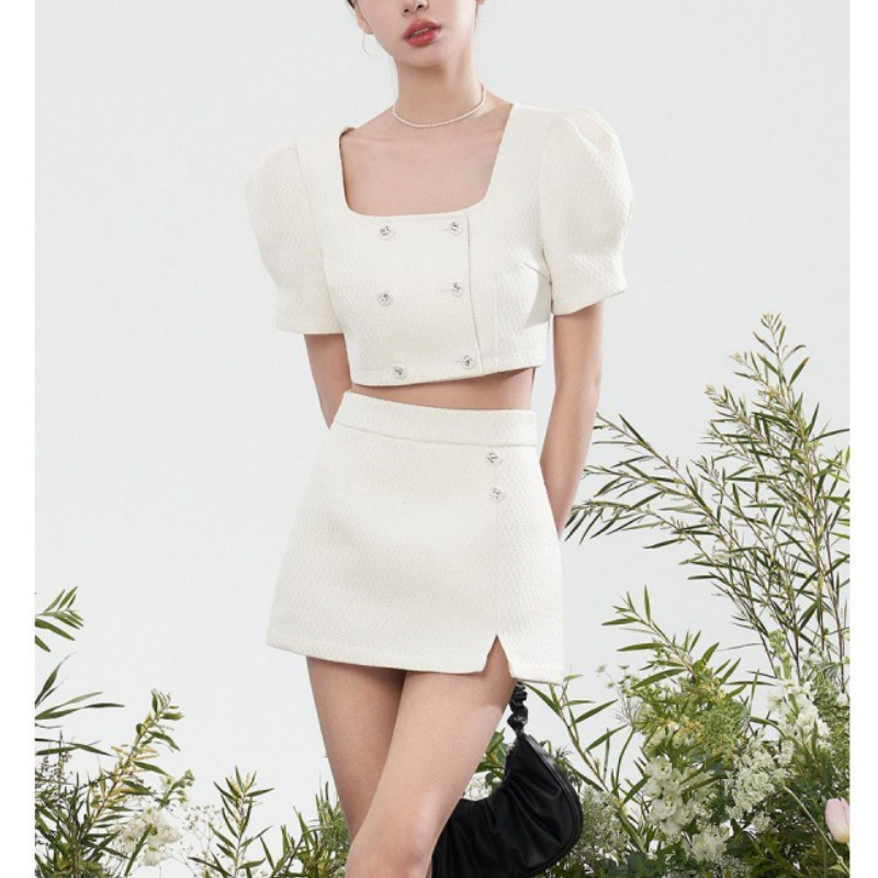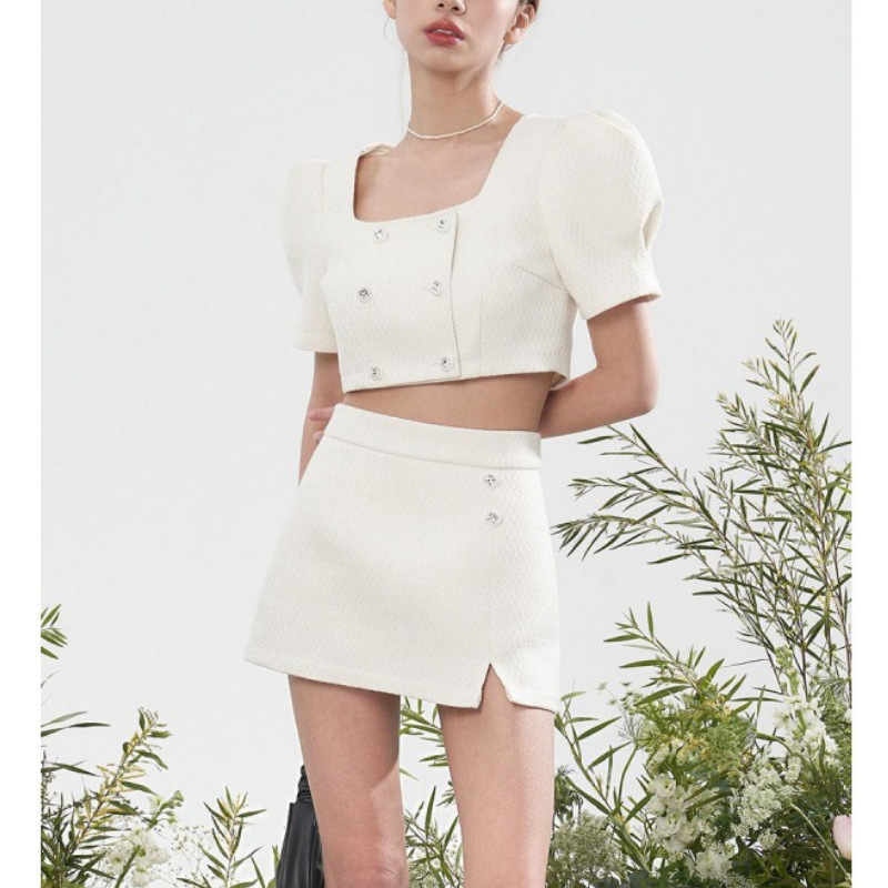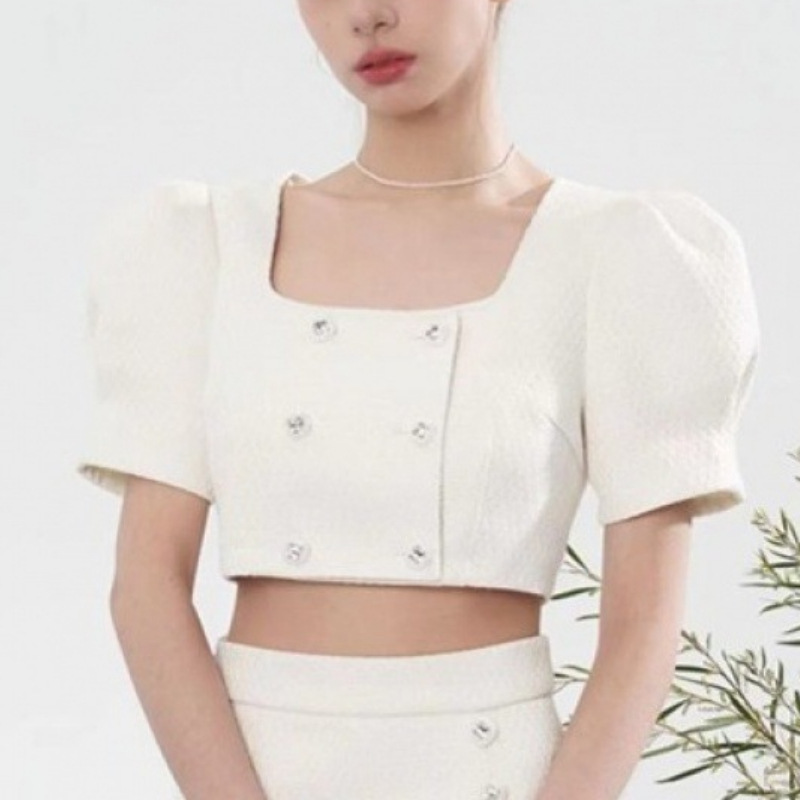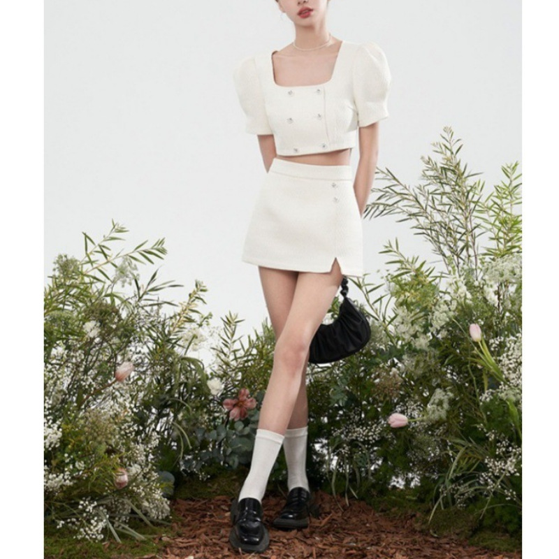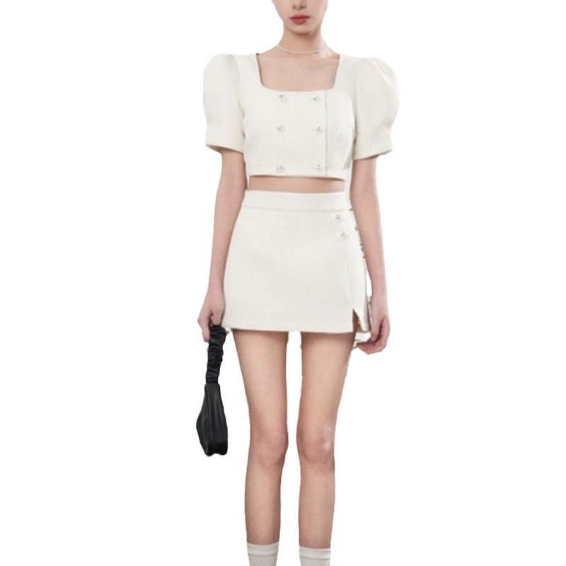 衣优雅短袖小个子甜辣高级短款chic上衣初夏两件套小香风套装裙女