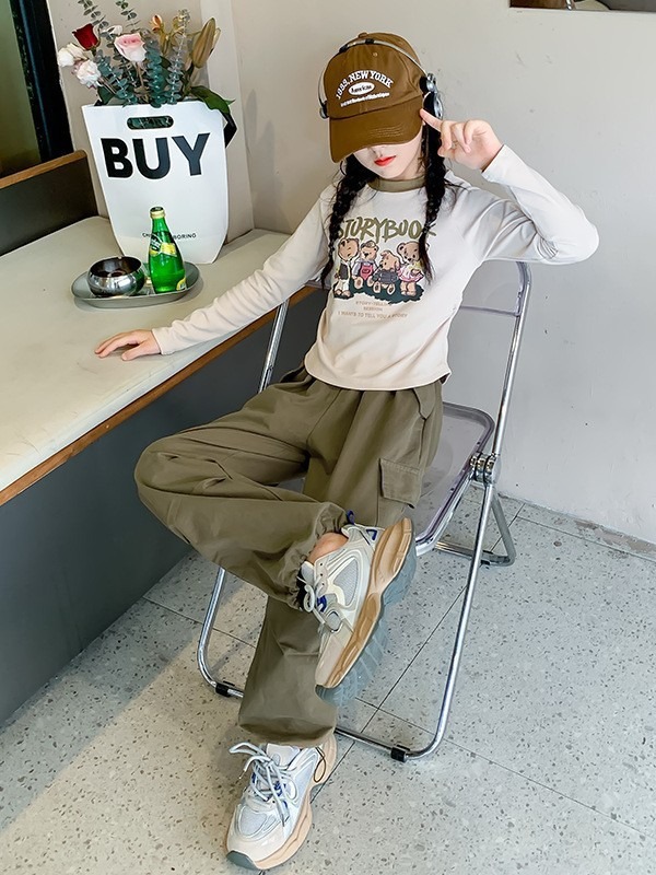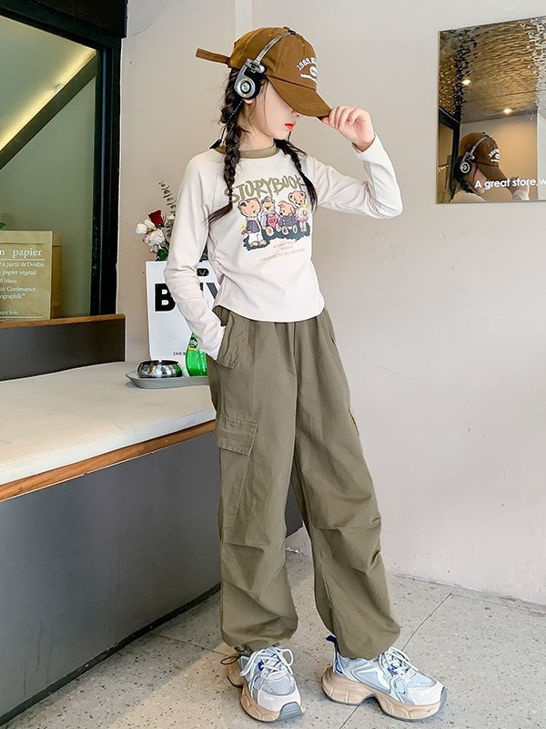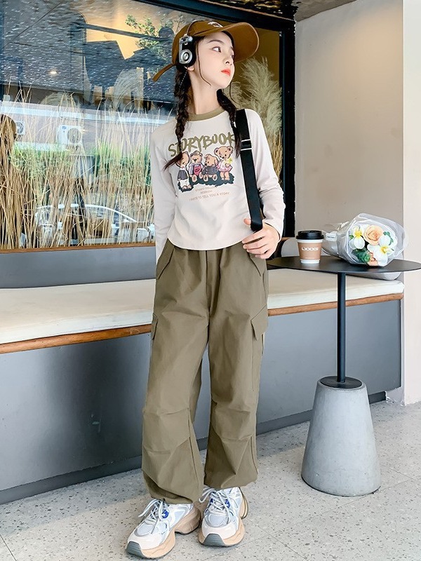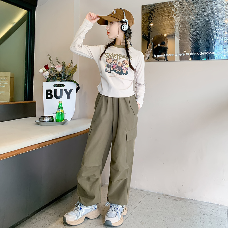 女童秋装新款洋气时髦童装韩版中大童工装裤休闲百搭春秋长裤
