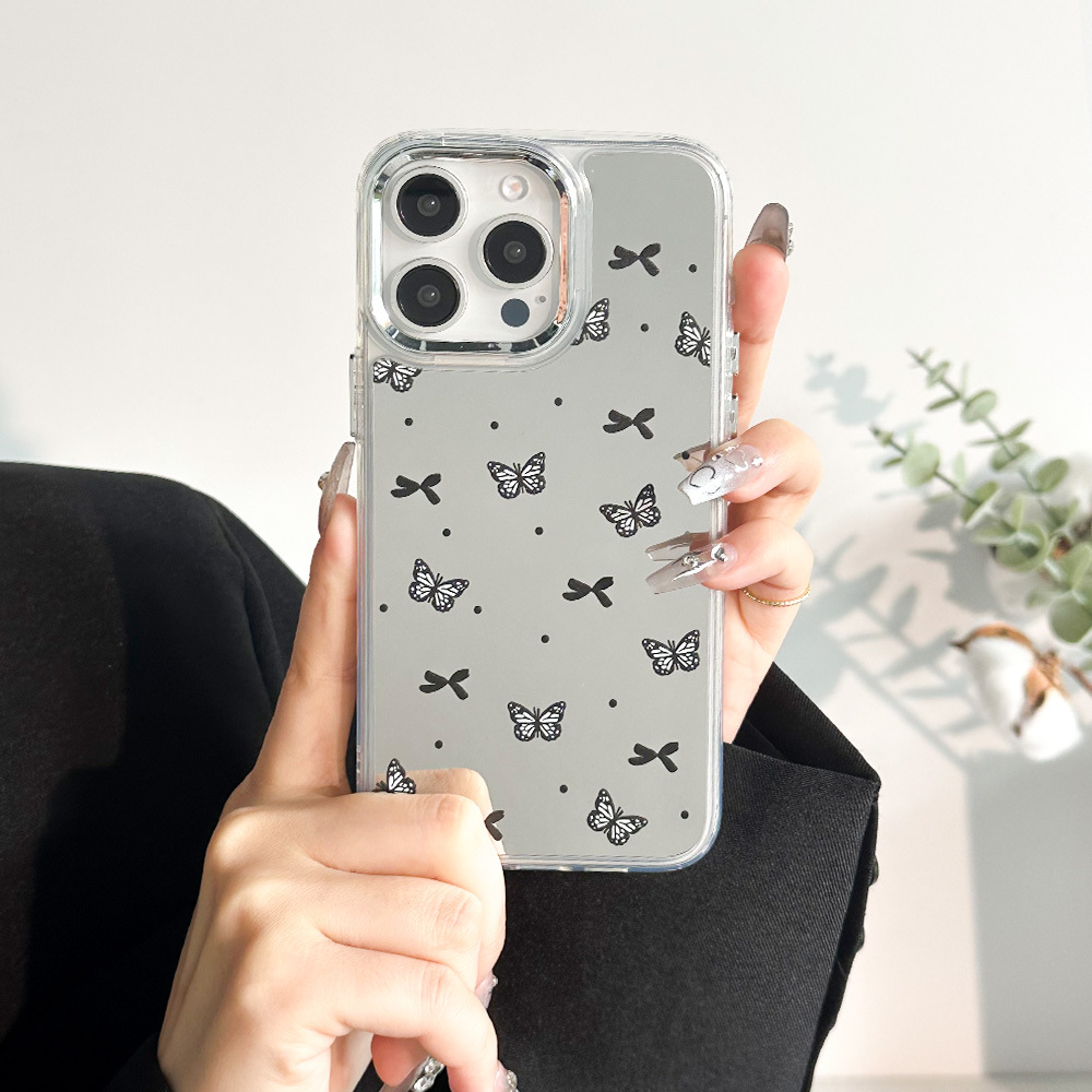 清冷感黑色蝴蝶手机壳适用苹果15promax高级iphone13防摔12羽纱14