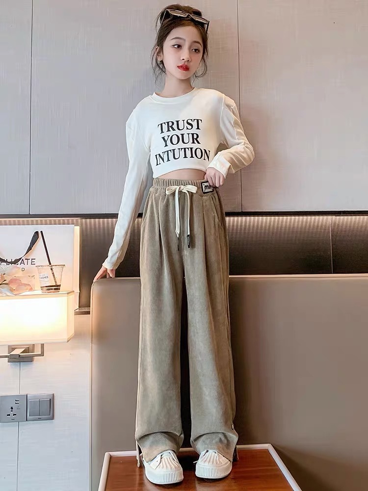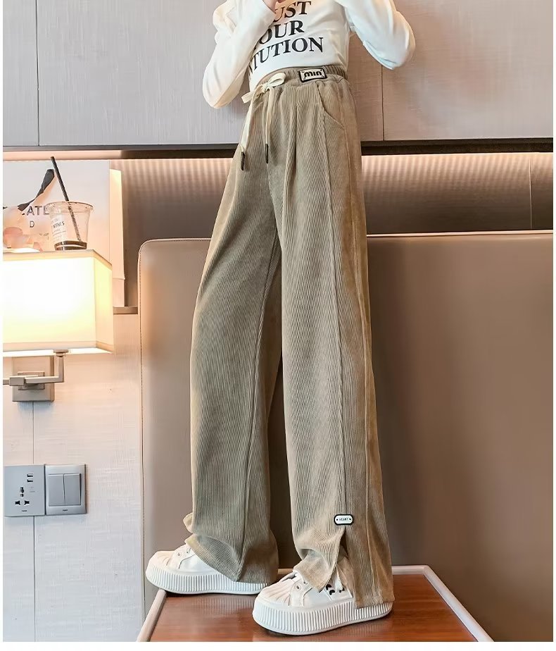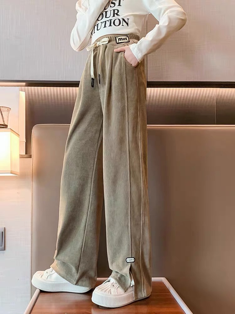 女童裤子春秋款新款儿童休闲直筒长裤中大童宽松灯芯绒阔腿裤