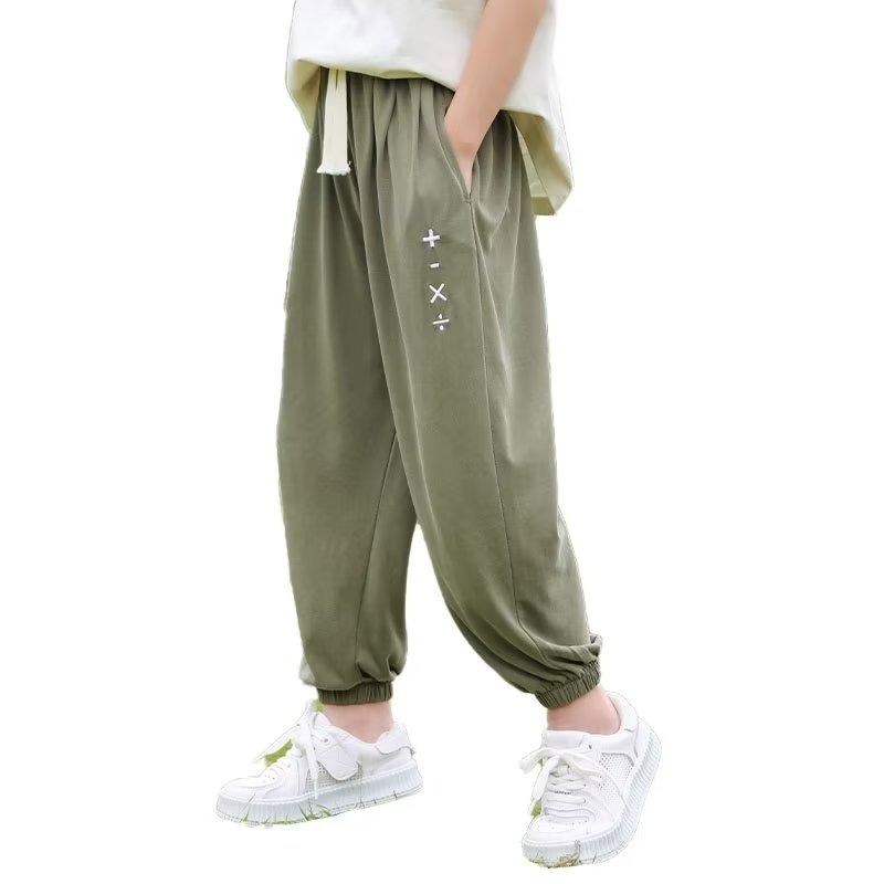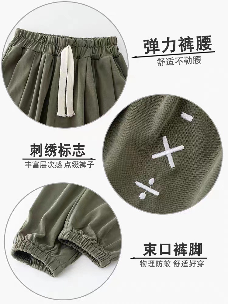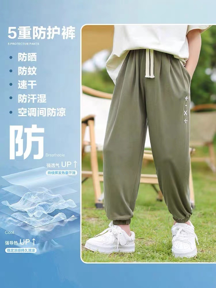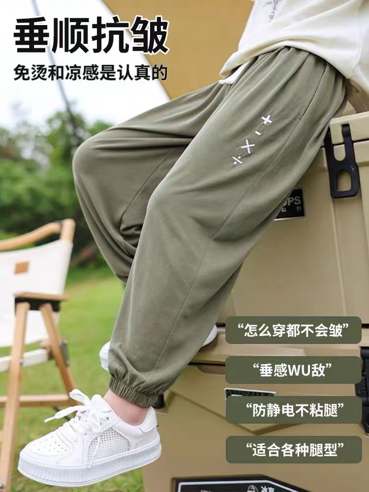 男童夏款裤子冰丝裤儿童铜氨丝防蚊裤宽松大童夏装面膜裤绿色长裤