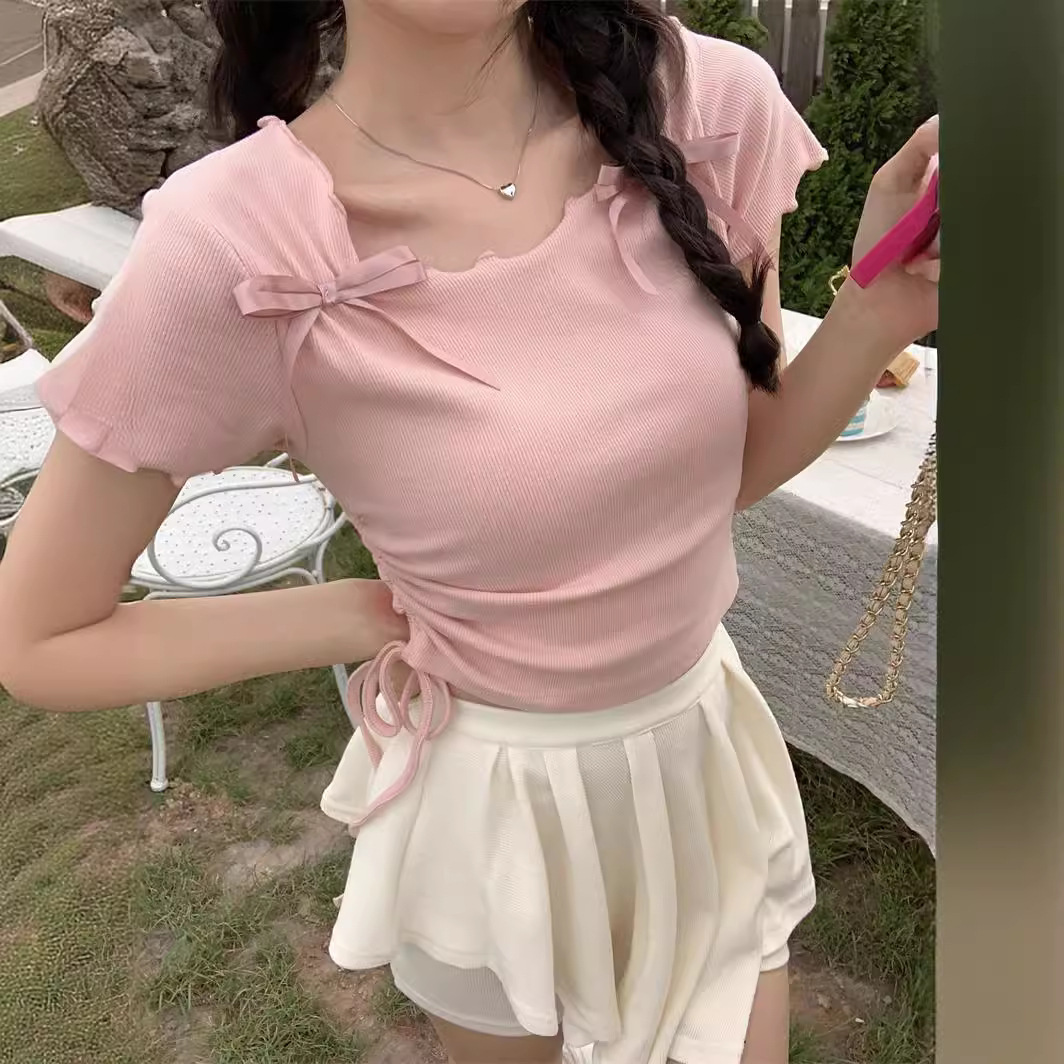 纯棉多巴胺穿搭女装短款t恤女短袖辣妹纯欲小个子修身正肩上衣潮