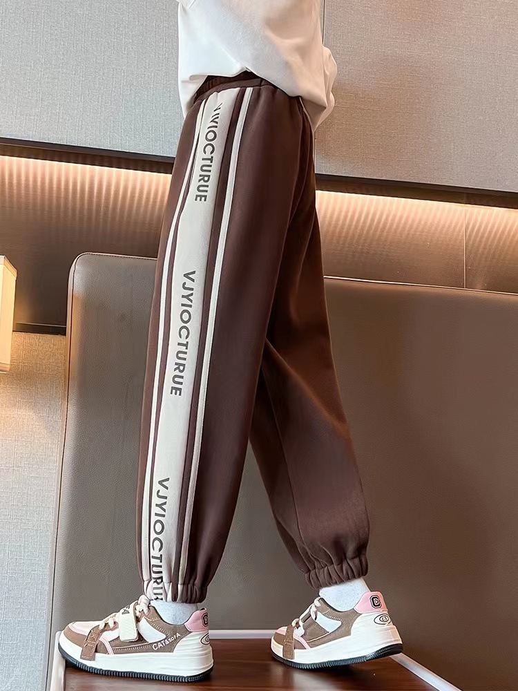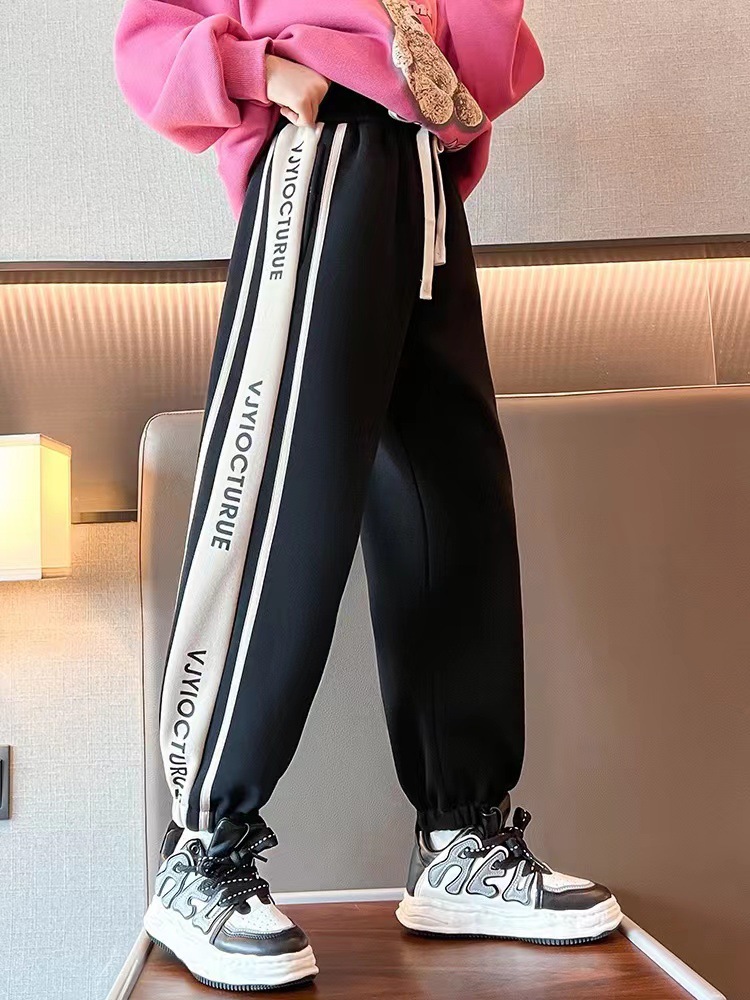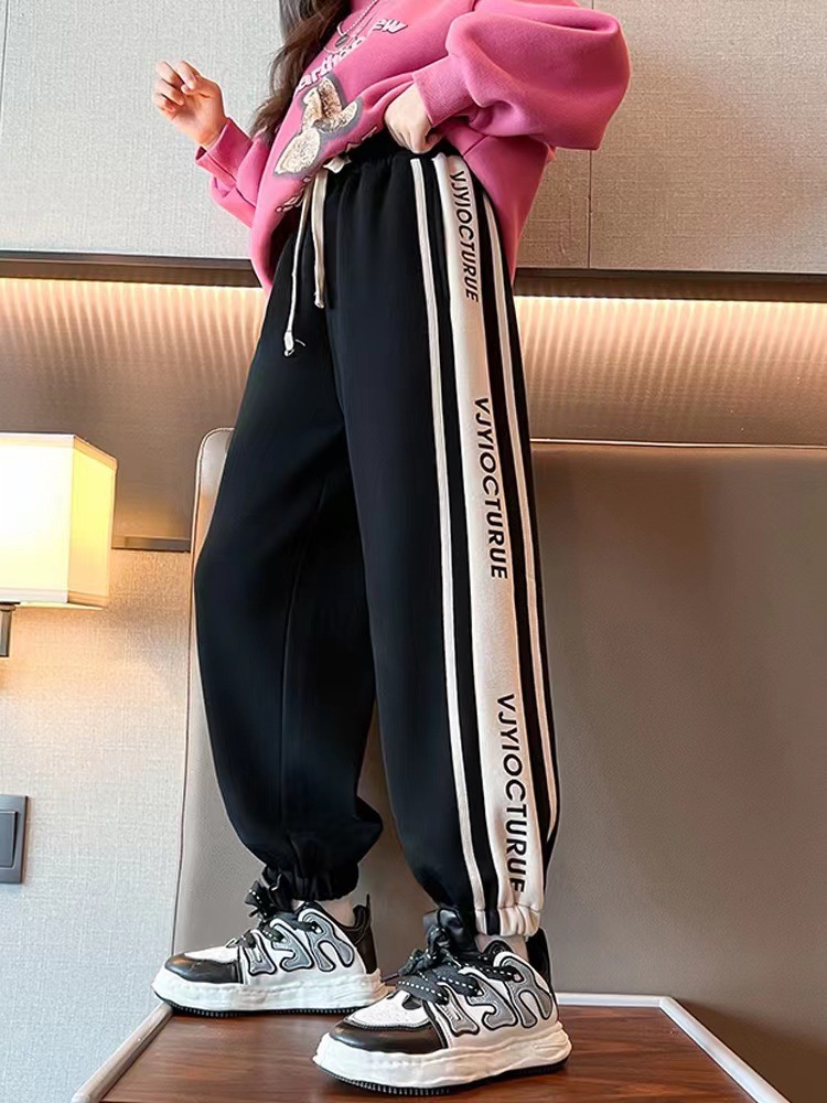 新款女童裤子秋冬款外穿儿童休闲卫裤女中大童拼接运动长裤子
