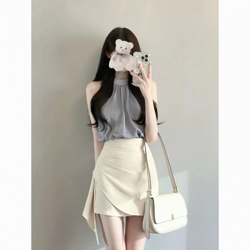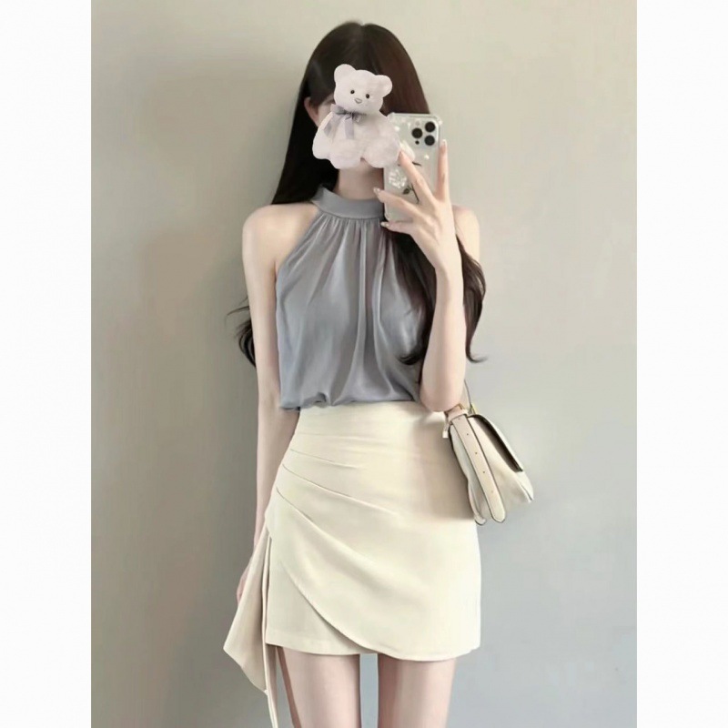 小香风套装两件套女夏季新款感欲挂脖背心上衣高腰显瘦半身裙