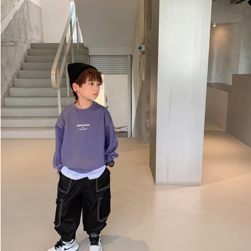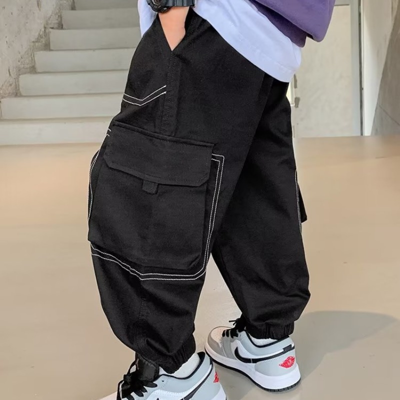 男童裤子春秋款新款潮帅气时髦宽松男孩秋装中大童儿童工装裤