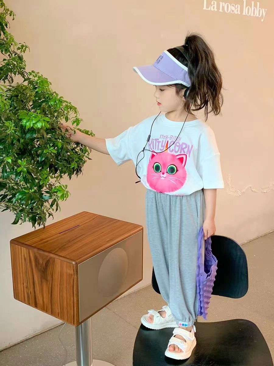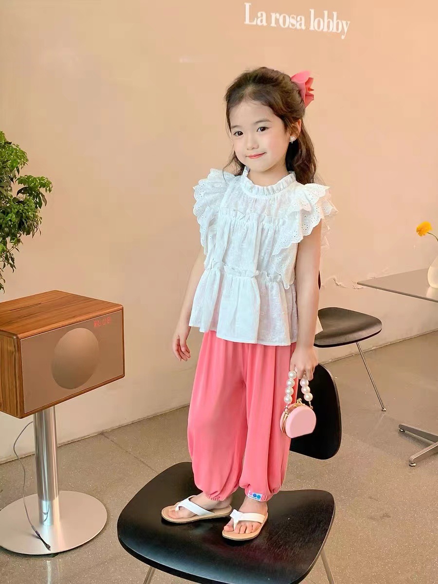 24夏儿童防蚊裤女童花边棉长裤数码印花轻薄百搭奶奶裤