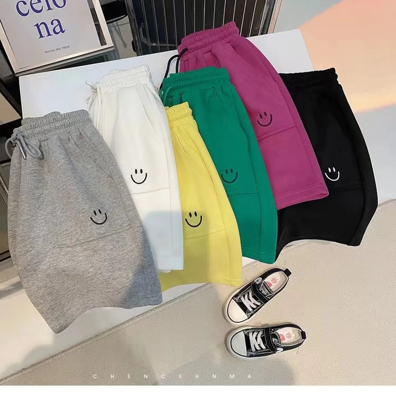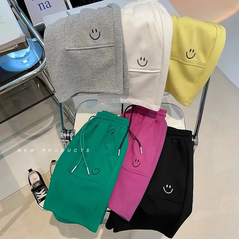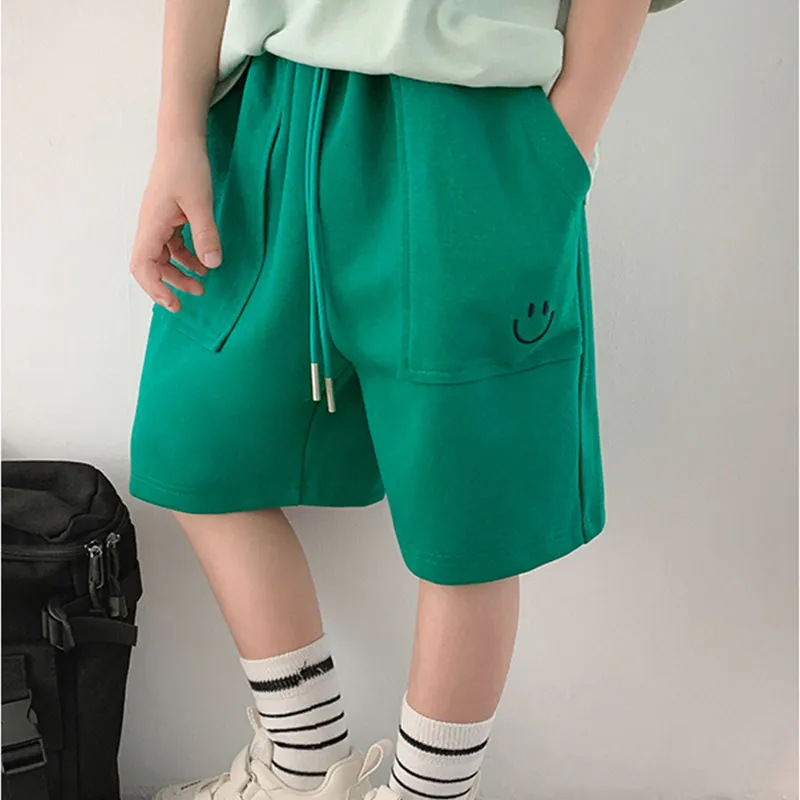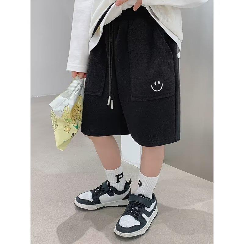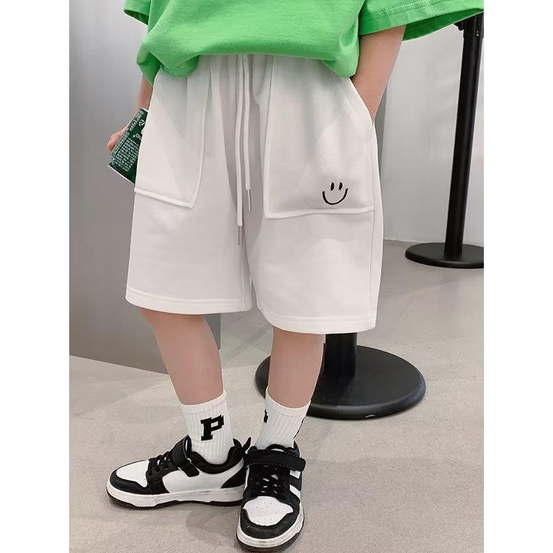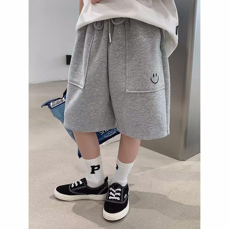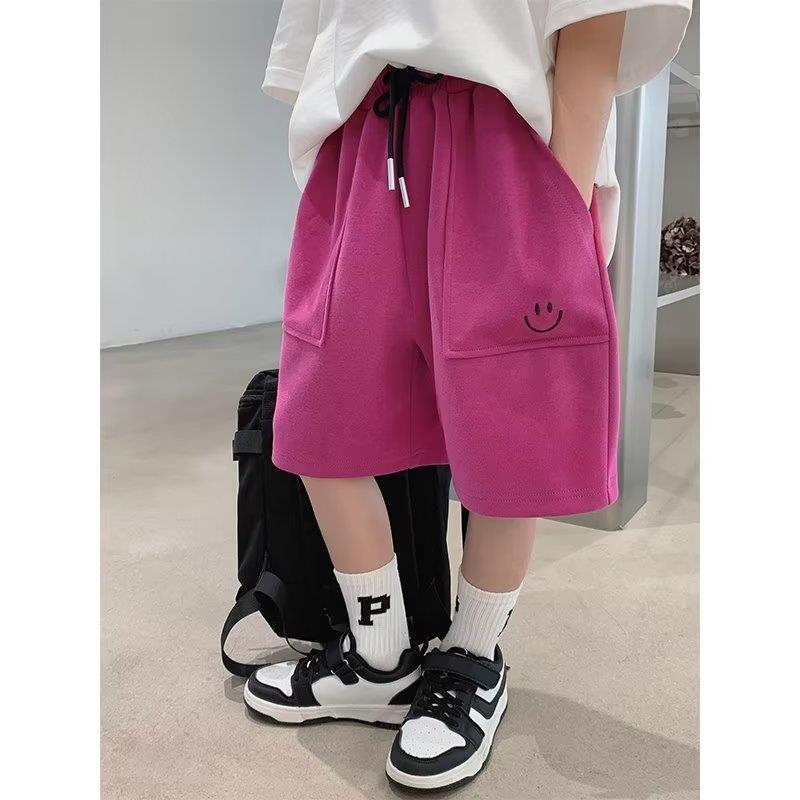 新款男童裤子春夏季儿童笑脸绣花百搭休闲短裤帅气宽松五分裤