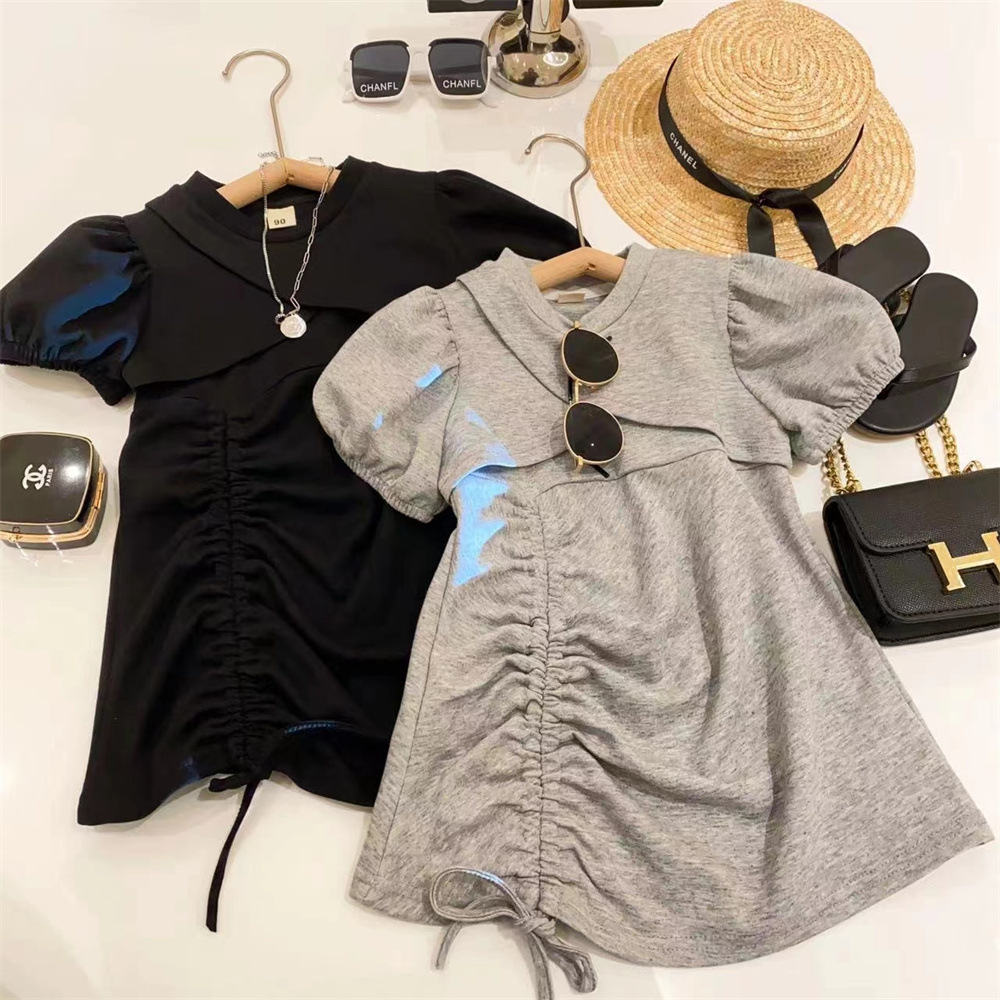 新品女童泡泡短袖短款外套系带松紧吊带裙两件套2025夏装