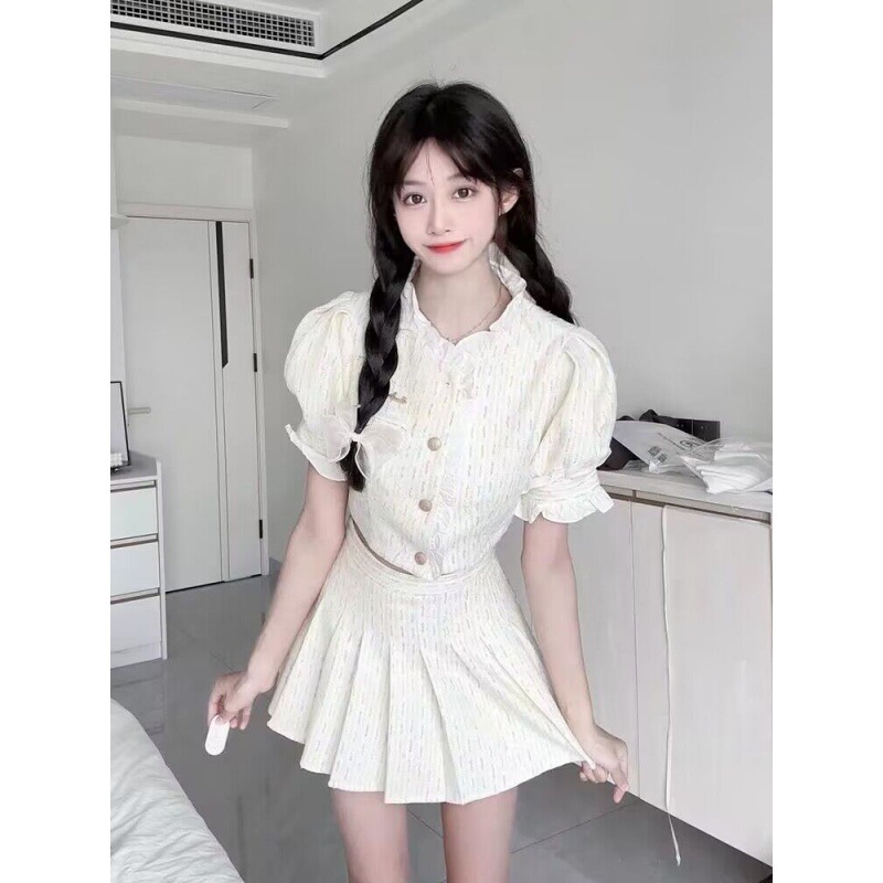 实拍学院风可爱甜美套装甜酷女装小个子小香风法式桔梗两件套裙子