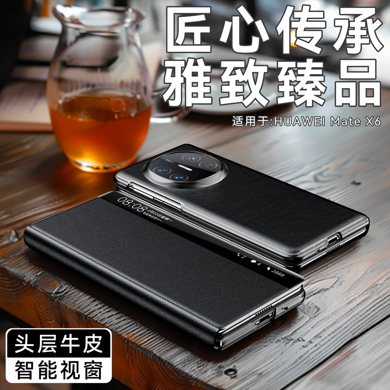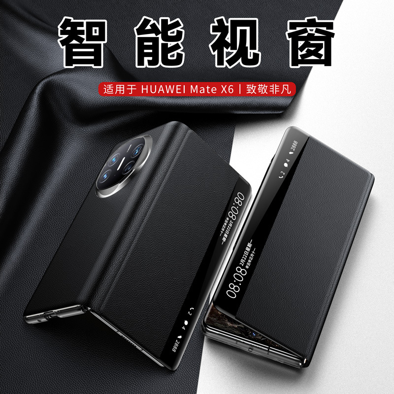 华为matex6手机壳折叠屏磁吸真皮翻盖智能视窗全包防摔保护套