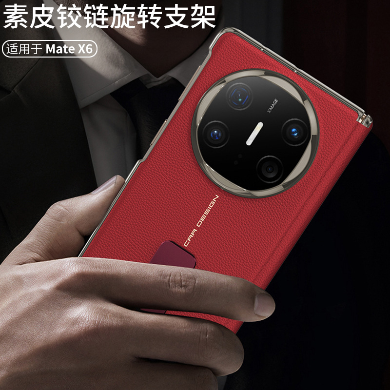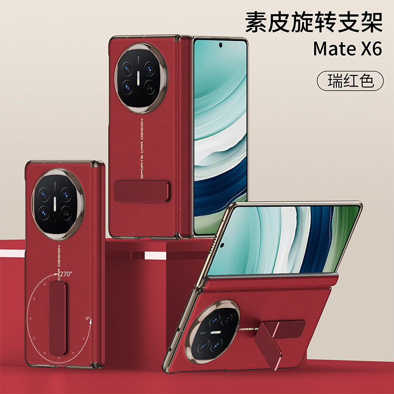 华为mateX6手机壳电镀分体带旋转支架单壳铰链素皮保护套商务