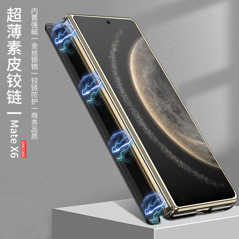 华为mateX6电镀素皮手机壳X6折叠屏磁吸无线保护皮套铰链全包