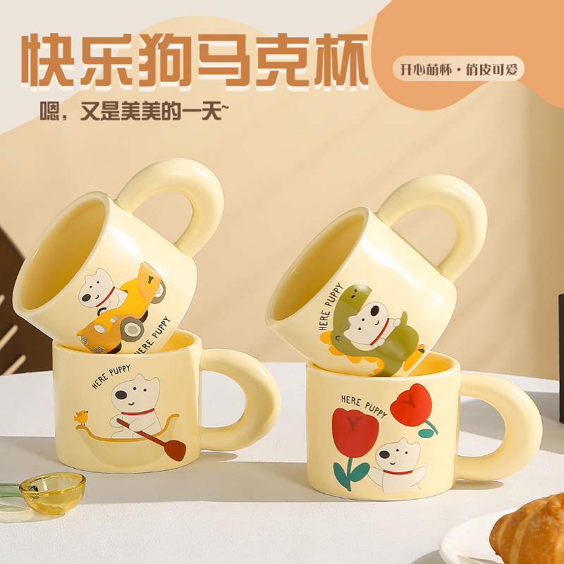 快乐小狗马克杯高颜值家用卡通牛奶杯开业活动礼品陶瓷杯礼盒
