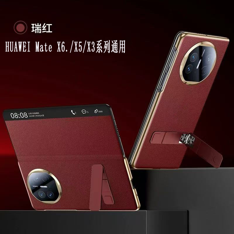 纳帕纹【瑞红色金边】头层牛皮☆旋转支架款