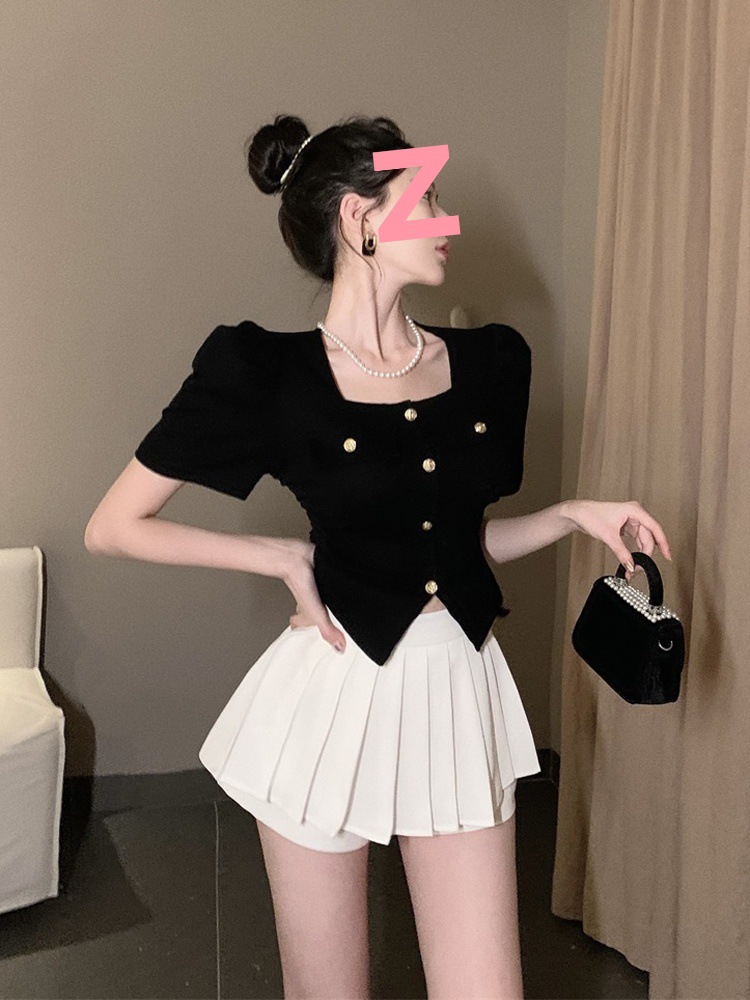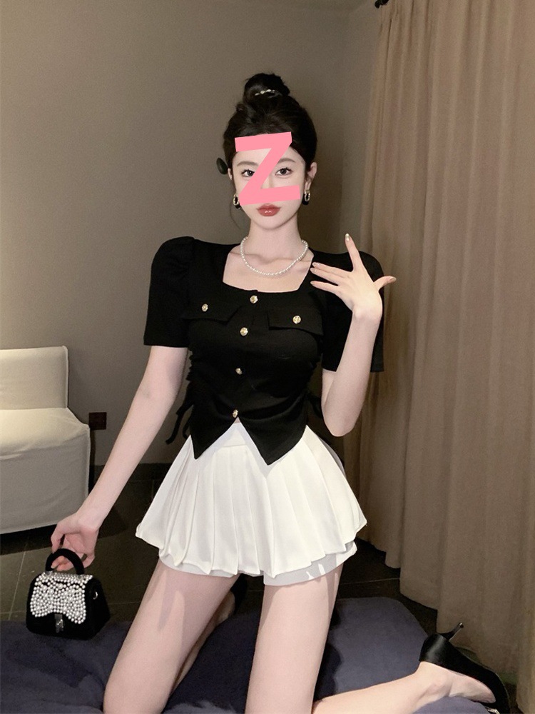 法式小香风辣妹感套装短袖上衣女夏季百褶短裤裙两件套小个子