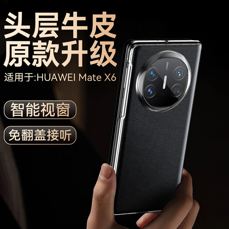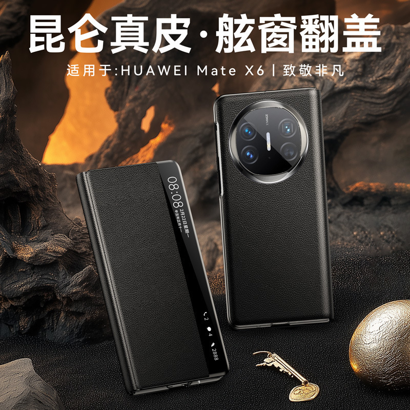 华为matex6手机壳折叠屏磁吸支架真皮翻盖智能视窗全包保护套