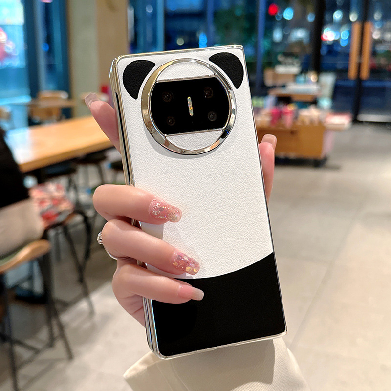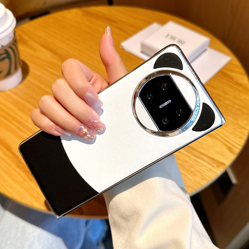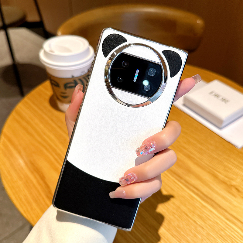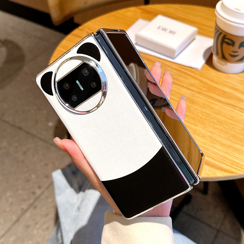 华为matex6手机壳熊猫配色华为X3折叠屏电镀边框x5典藏版素皮