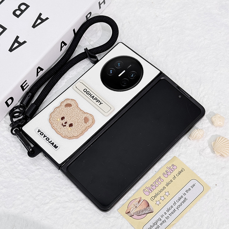 华为MateX6女款手机壳简约XT可爱刺绣小熊X5手提X3折叠保护套