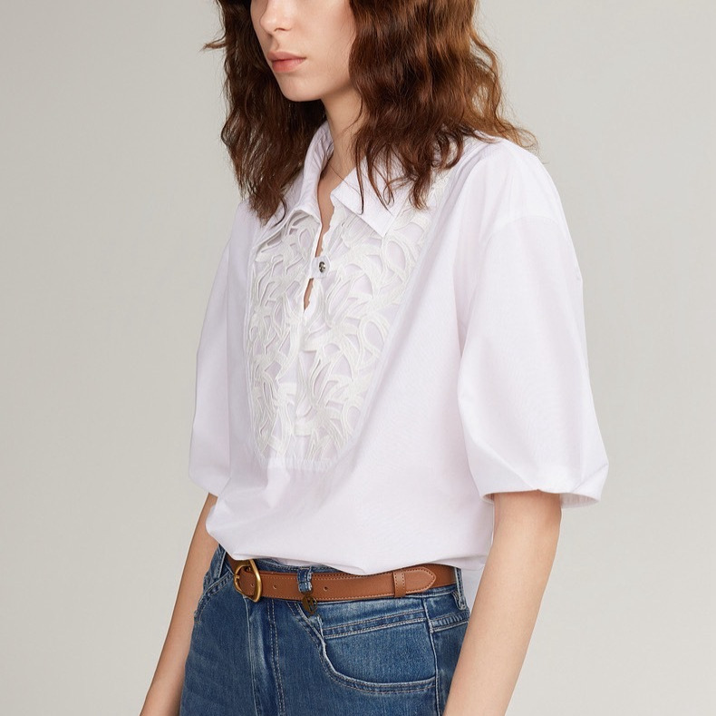 ELLE白色设计感时尚刺绣郁金香衬衫女2025春季通勤风宽松轻奢上衣
