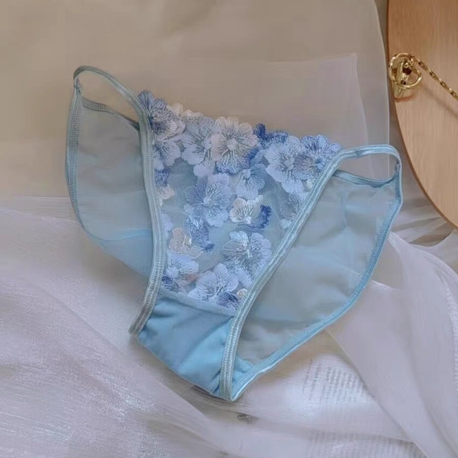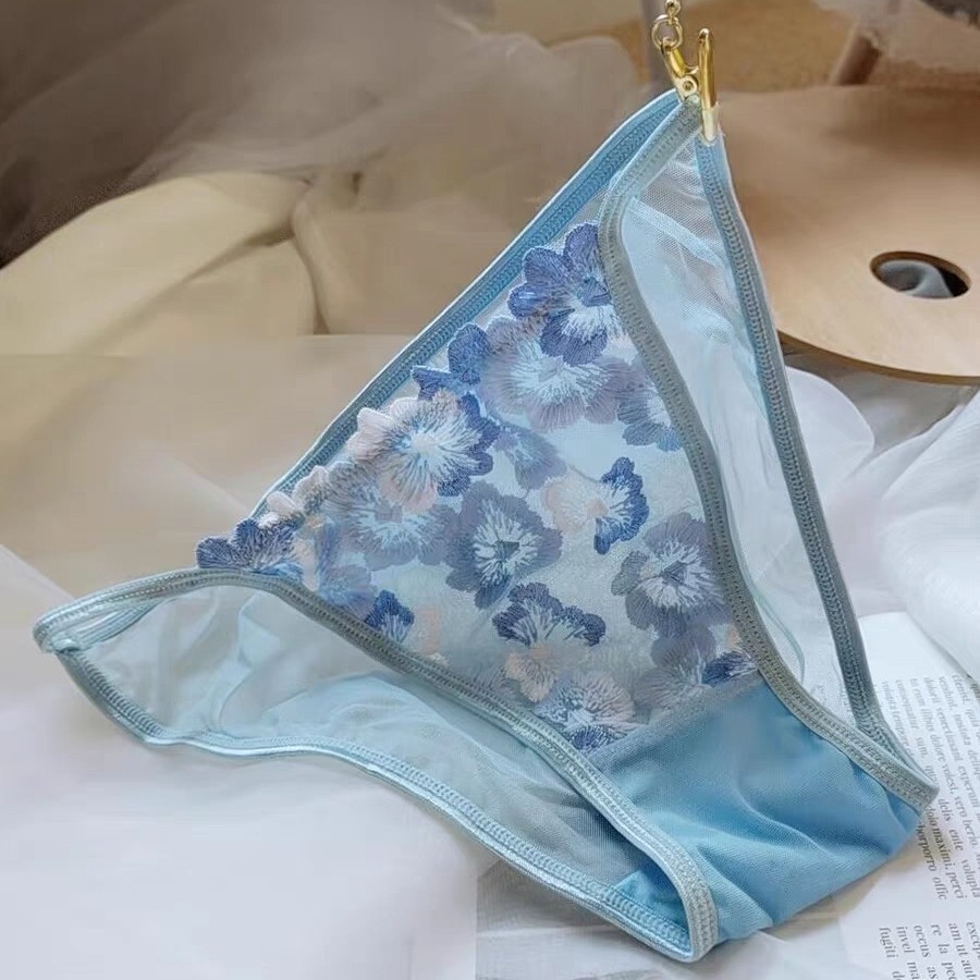 女士性感三角裤刺绣花朵半包臀低腰棉裆透气舒适内裤纯欲少女小裤