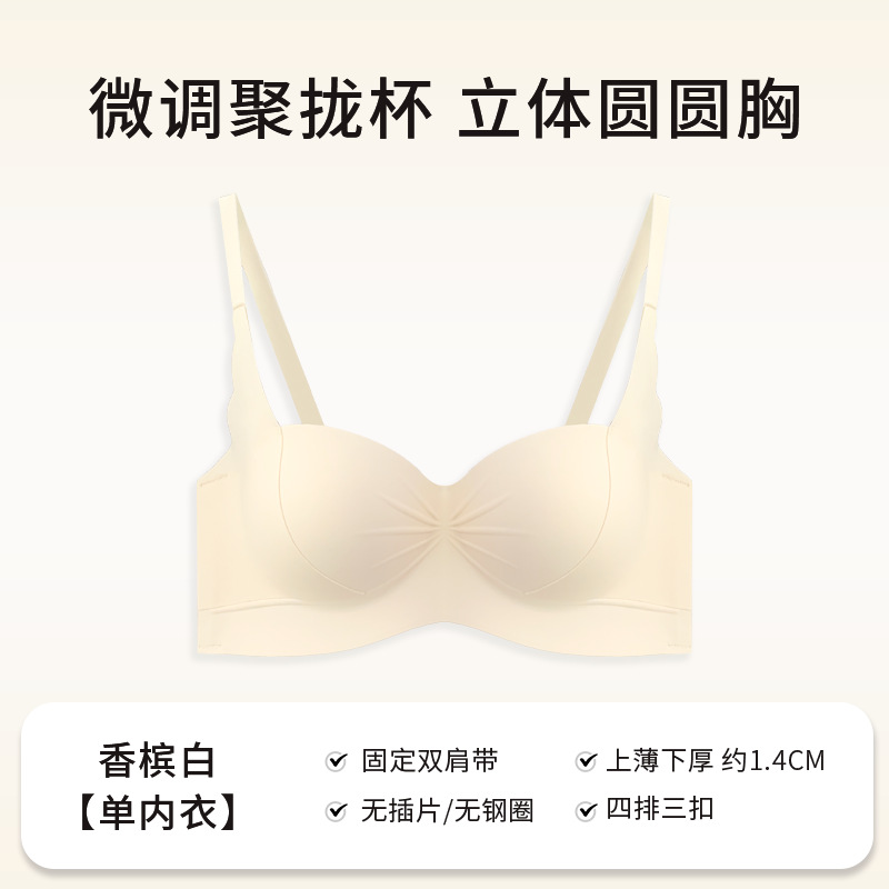【圆圆胸】半杯无钢圈调整型显胸大文胸无痕收副乳内衣女小胸聚拢